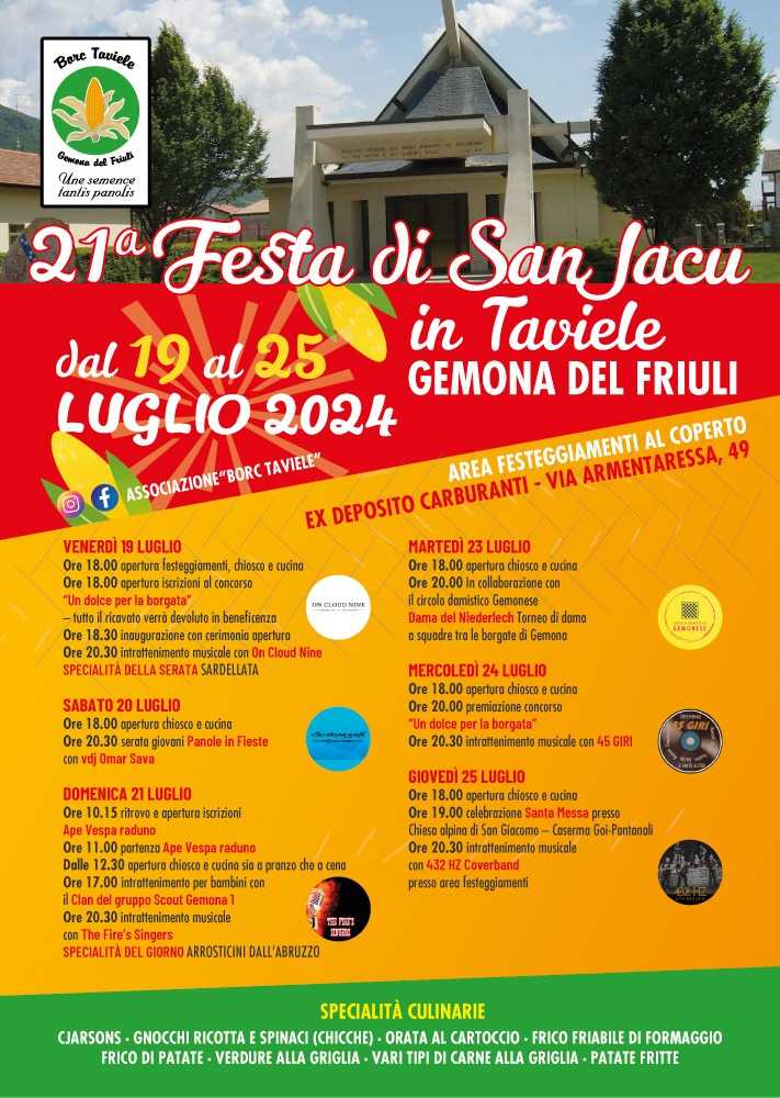 Tradizionale sagra paesana in località Taviele a Gemona, dal 19 al 25 luglio, con appuntamenti musicali, intrattenimenti per bambini, Aperaduno e celebrazioni liturgiche.