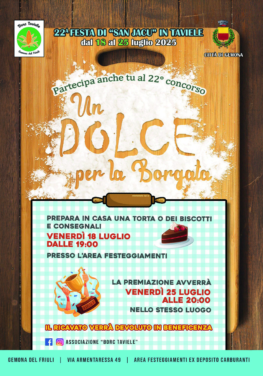 Prepara in casa una torta o dei biscotti e consegnali venerdì 18 luglio dalle ore 19:00 presso l'area festeggiamenti in Via Armentaressa 49!