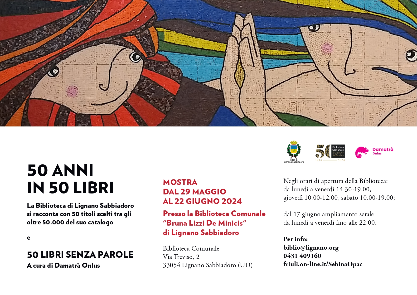 La Biblioteca di Lignano Sabbiadoro si racconta con 50 titoli scelti tra gli oltre 50000 del suo catalogo e 50 libri senza parole a cura di Damatrà Onlus.