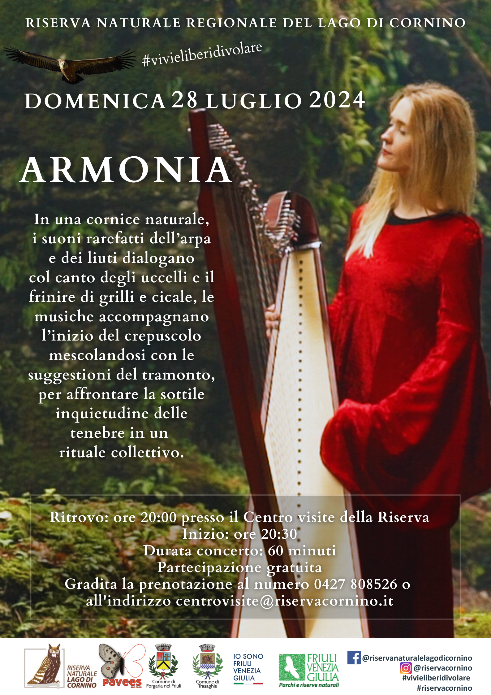 LaBelArp, acronimo de “La Bella e l’Arpista”, vi aspettano al loro concerto, suonato all'imbrunire nei verdi prati della Riserva.