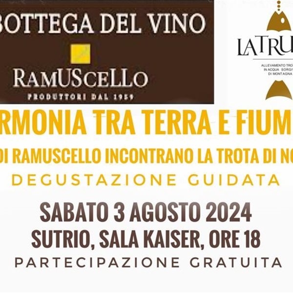 I vini di Ramuscello incontrano la trota di Noiariis: degustazione guidata con partecipazione gratuita; richiesta prenotazione.
