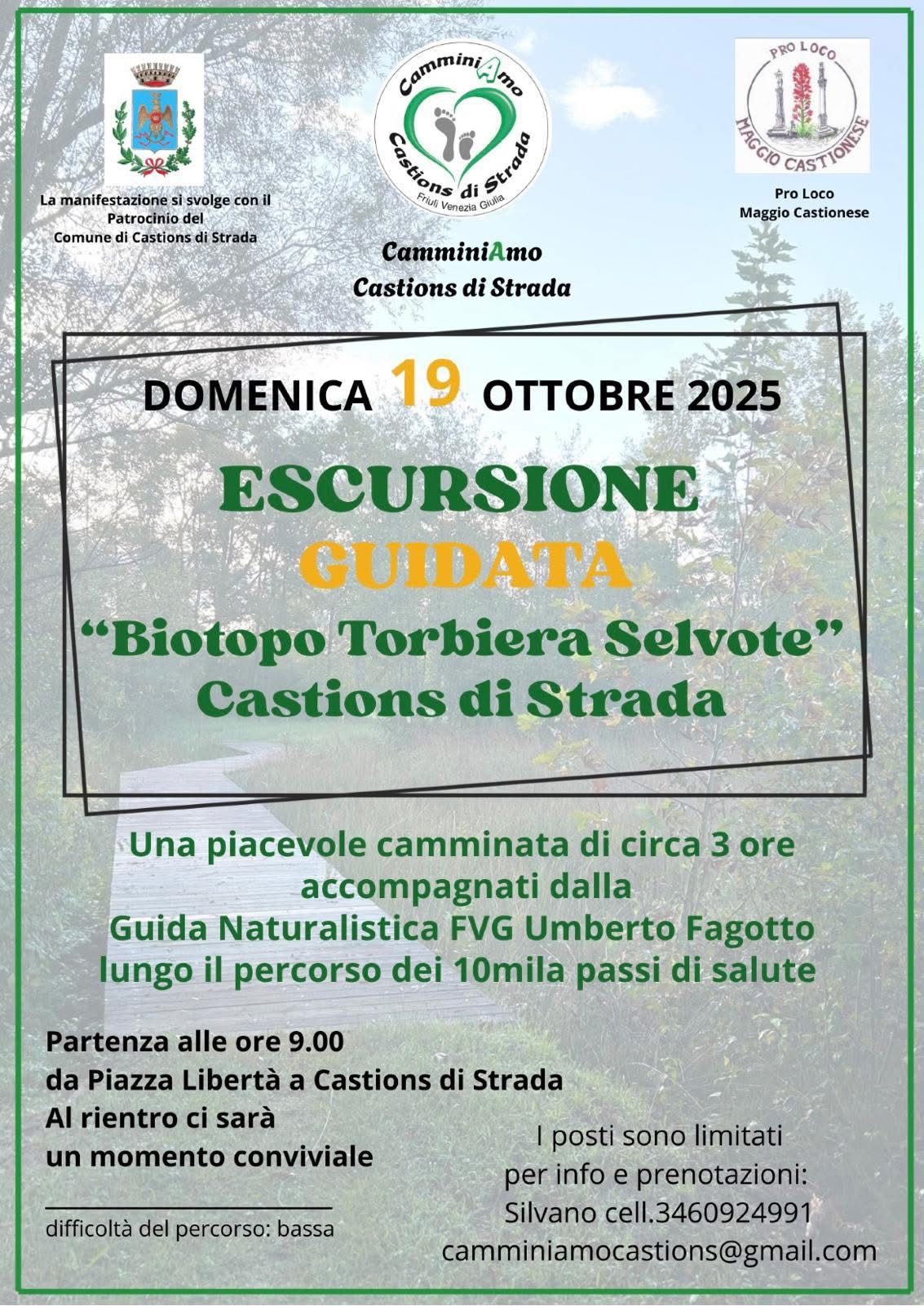 Partenza alle 09:00 da piazza LIbertà a Castioins di Strada ea rientro ci sarà un momento conviviale.