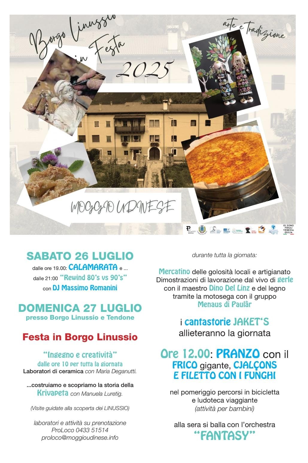 per i laboratori è gradita la prenotazione presso la Pro Loco Moggese 0433.51514 proloco@moggioudinese.info.