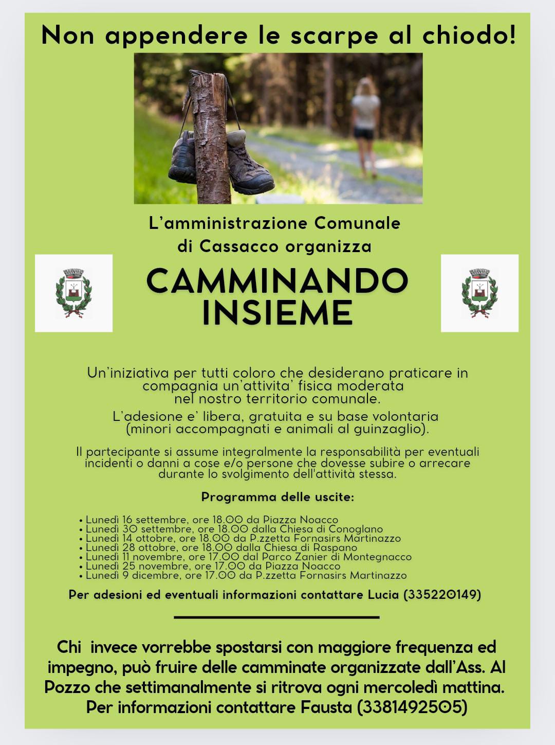 Se vuoi camminare più spesso, l'Ass. Al Pozzo organizza camminate ogni mercoledì mattina. Chiama Fausta al 3381492505 per saperne di più!