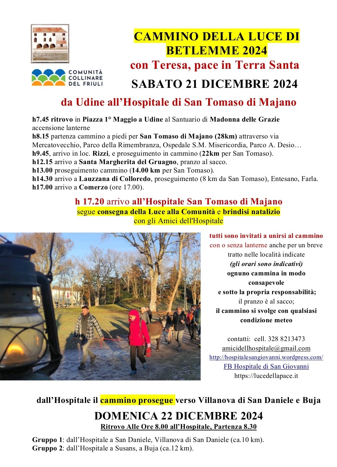 Cammino della luce di Betlemme: da Udine all’Hospitale di San Tomaso di Majano.