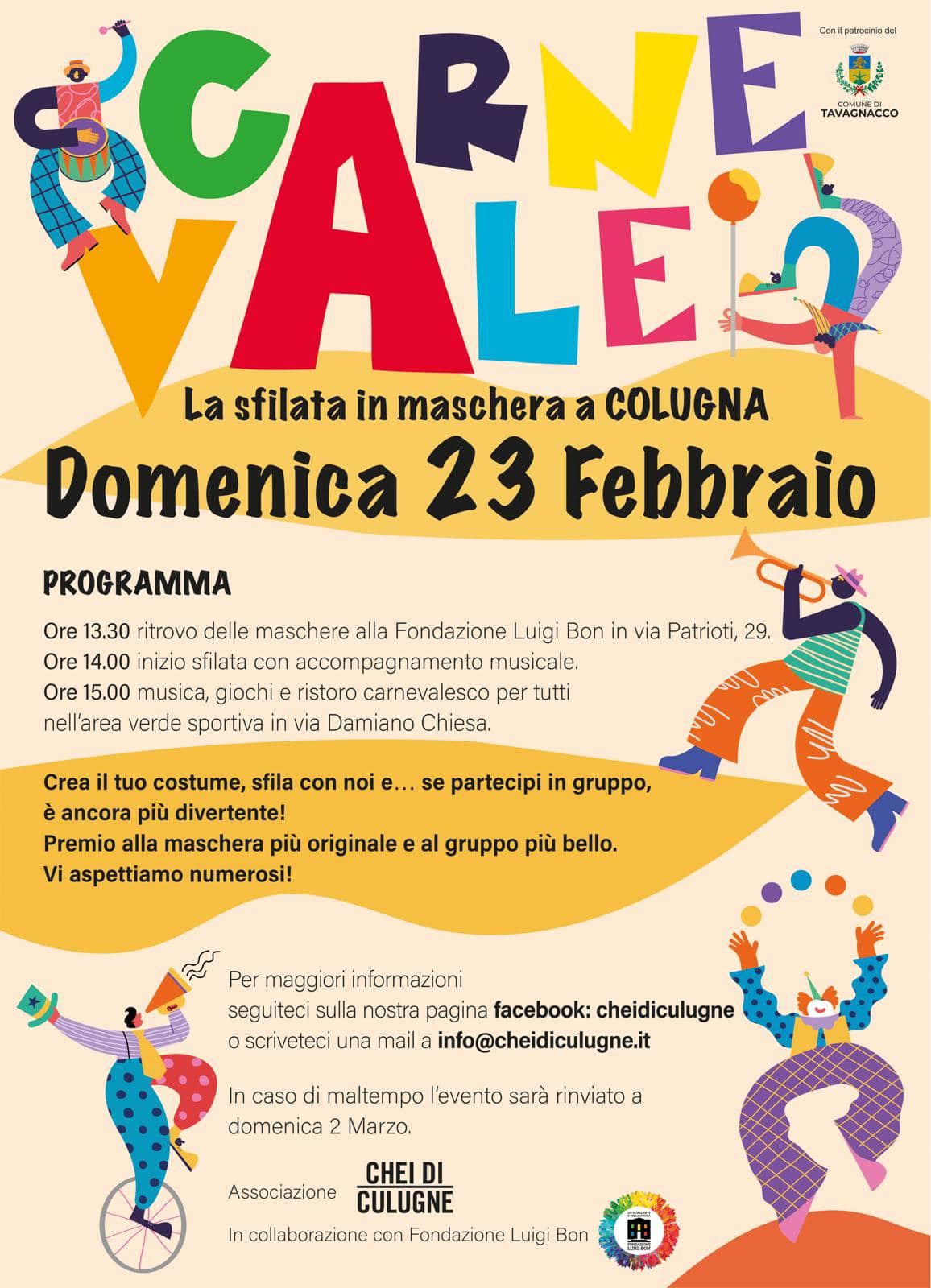 Partecipa anche tu alla sfilata di Carnevale insieme all’Associazione Chei di Culugne.