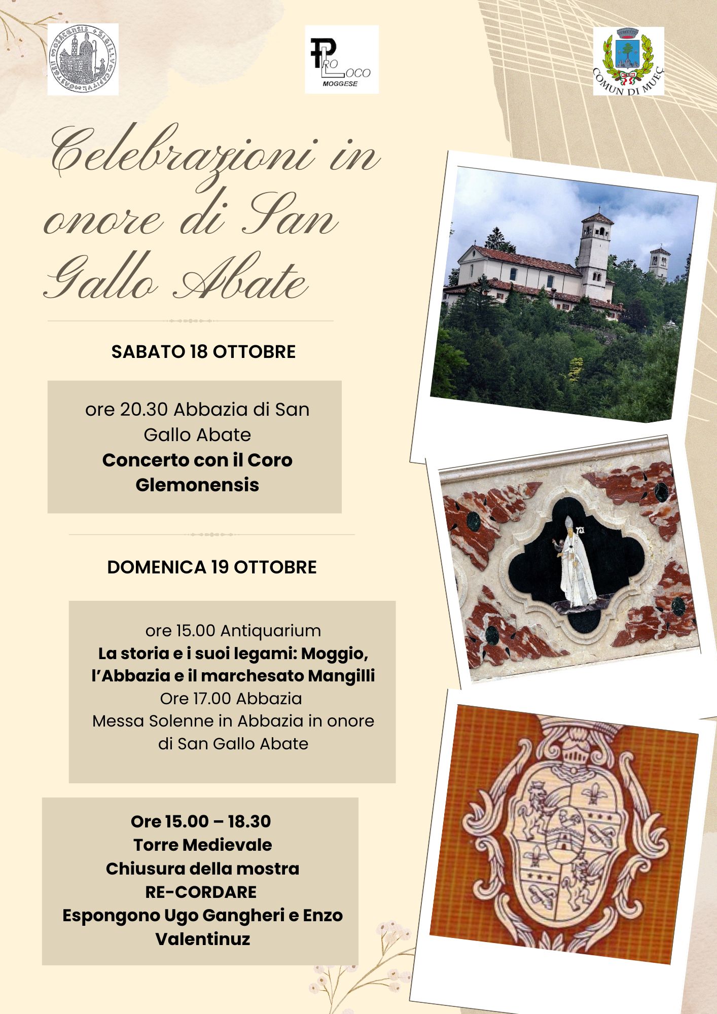 ore 17.00 Abbazia di San Gallo, Messa Solenne e avvio dell'anno catechistico.
