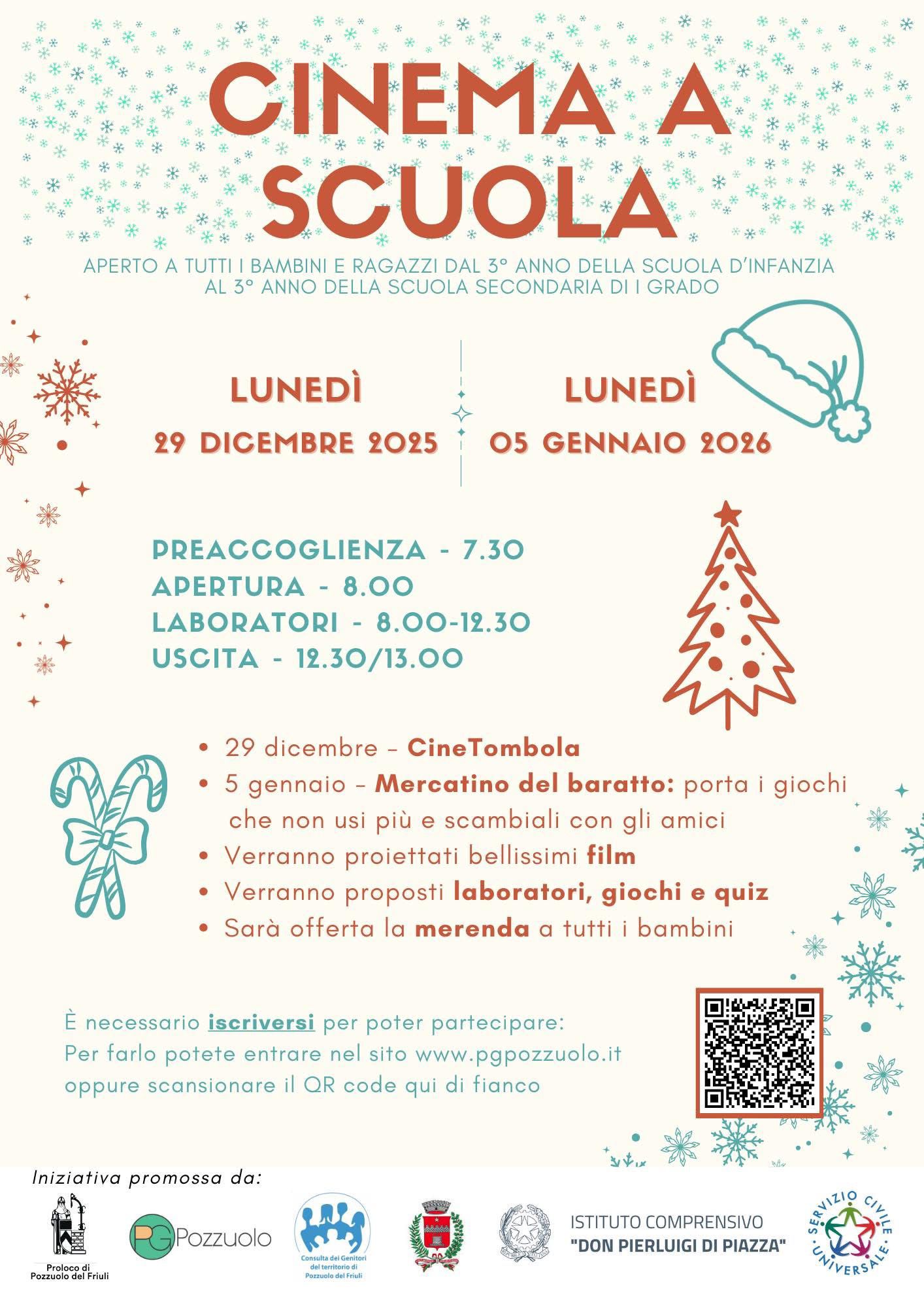 Anche quest'anno non possono mancare i due appuntamenti del cinema a scuola, presso la scuola primaria di Pozzuolo: