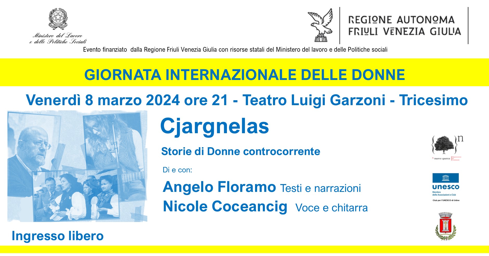 Testi e narrazioni di Angelo Floramo, voce e chitarra di Nicole Coceancig