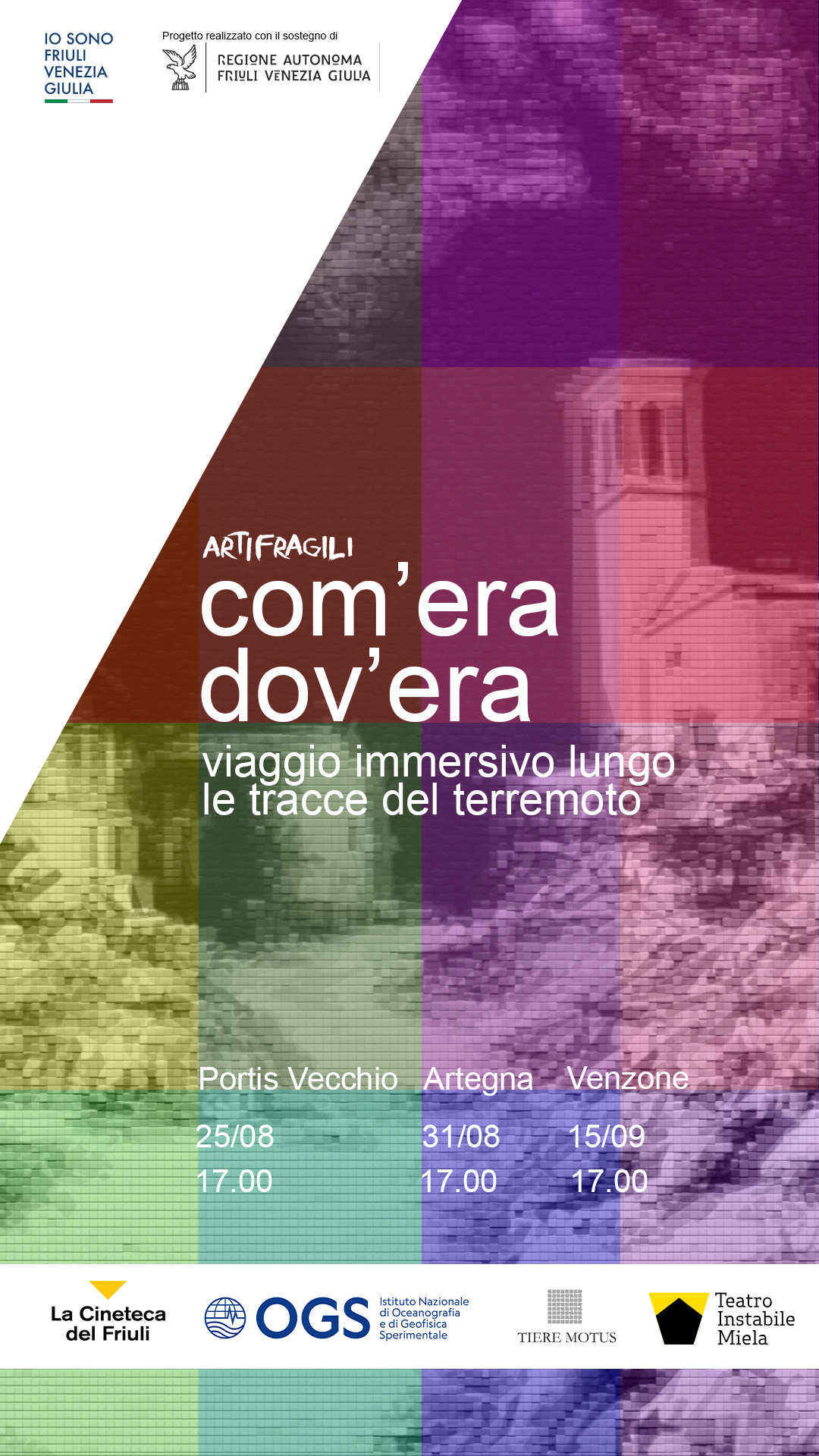 COM’ERA DOV’ERA” è un progetto dell’ Associazione culturale “Artifragili” che vuole combinare il podcasting, il teatro immersivo con cue e la proiezione di film di famiglia, nei luoghi storici del terremoto che colpì il Friuli-Venezia Giulia nel 1976.