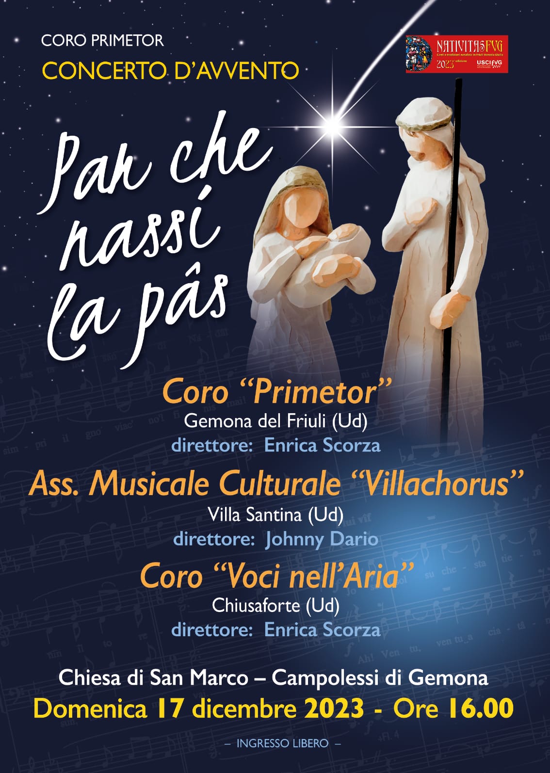 Concerto inserito nella rassegna Nativitas FVG 2023 - Canti e tradizioni natalizie in Friuli-Venezia Giulia, XXIII edizione.
