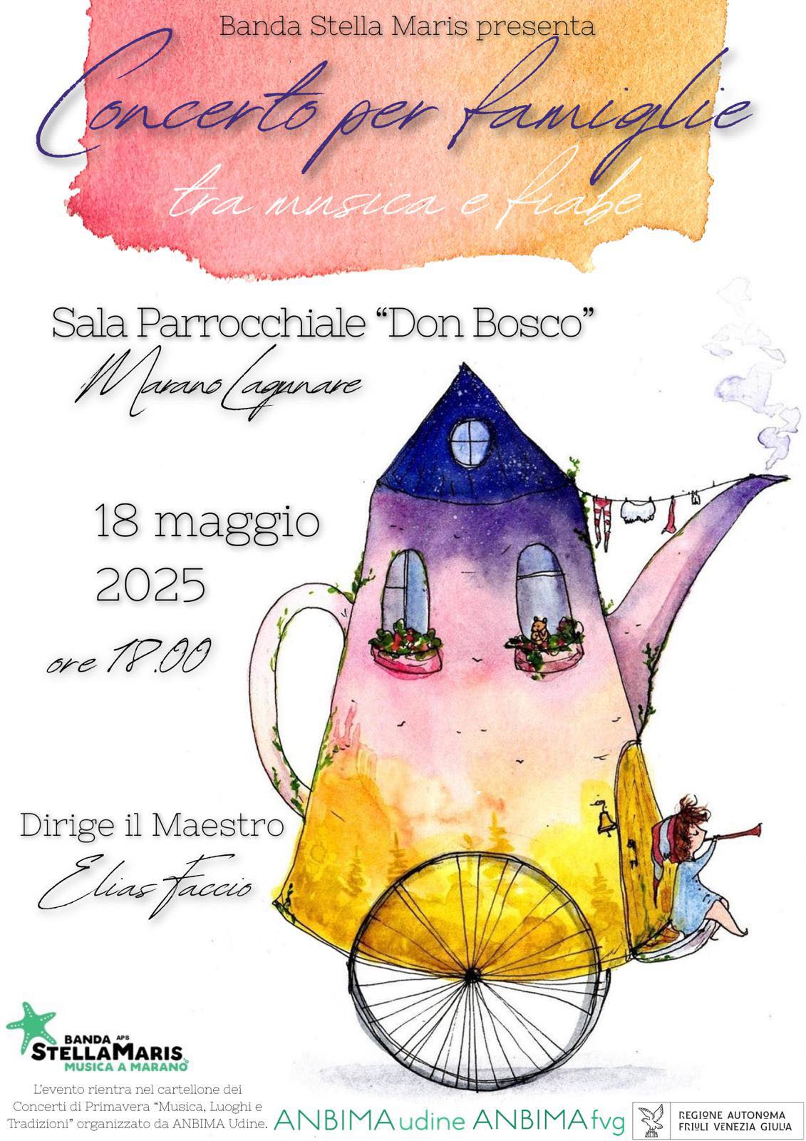 La Banda “Stella Maris” di Marano Lagunare ci invita ad un pomeriggio magico per tutta la famiglia, con un viaggio sonoro tra i grandi classici del cinema e della musica come "La Pantera Rosa", "Tarzan", "Gli Aristogatti" e non solo. Dirige il Maestro Elias Faccio.