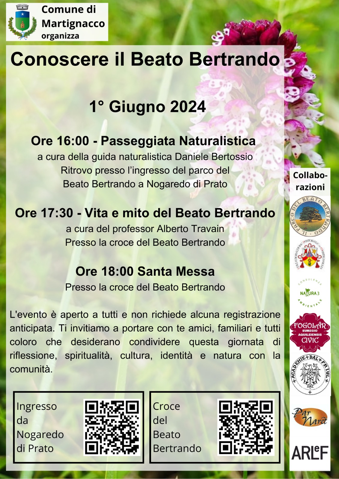 Ore 18:00 Santa Messa presso la croce del Beato Bertrando