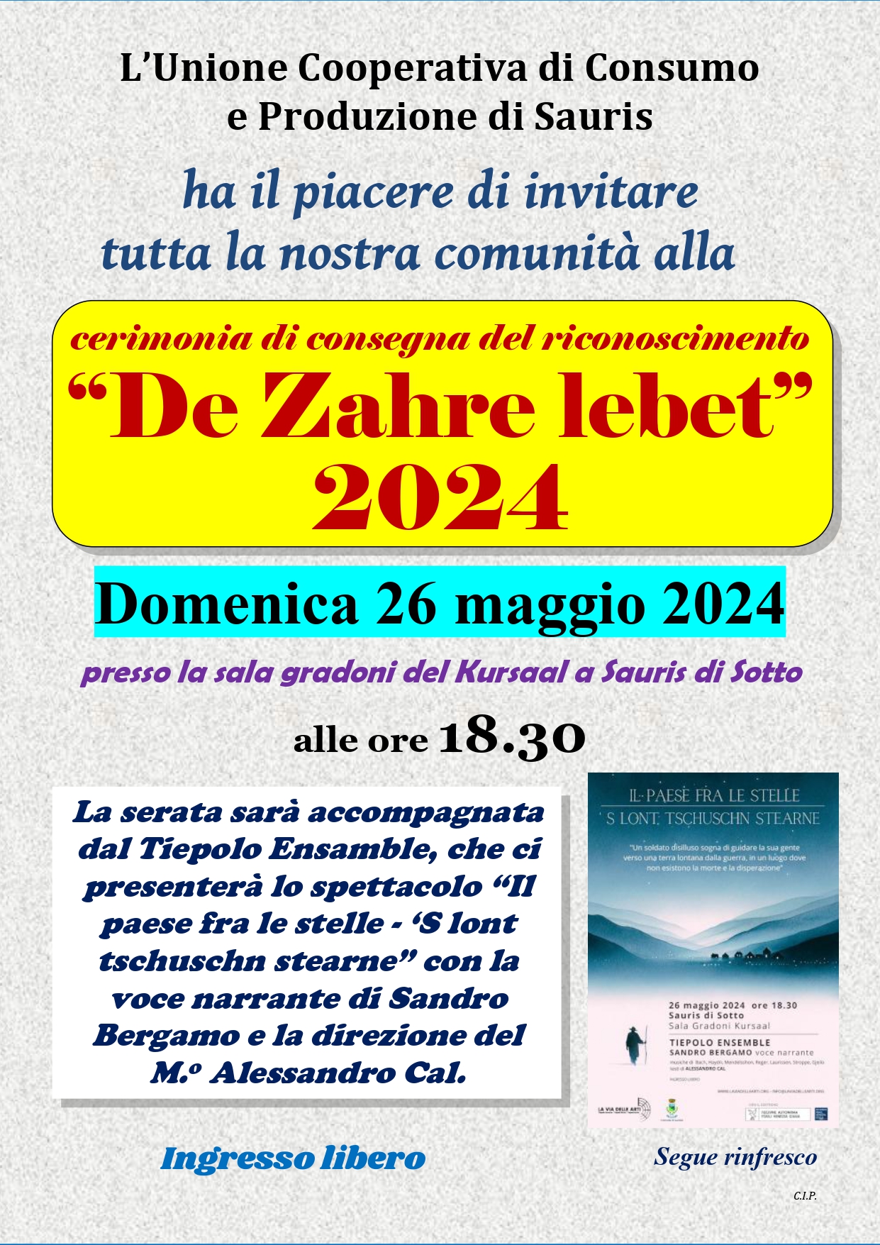 La serata sarà accompagnata dallo spettacolo "Il paese fra le stelle- S lont tschuschn stearne" del Tiepolo Ensamble con la voce narrante di Sandro bergamo e la direzione del maestro Alessandro Cal.