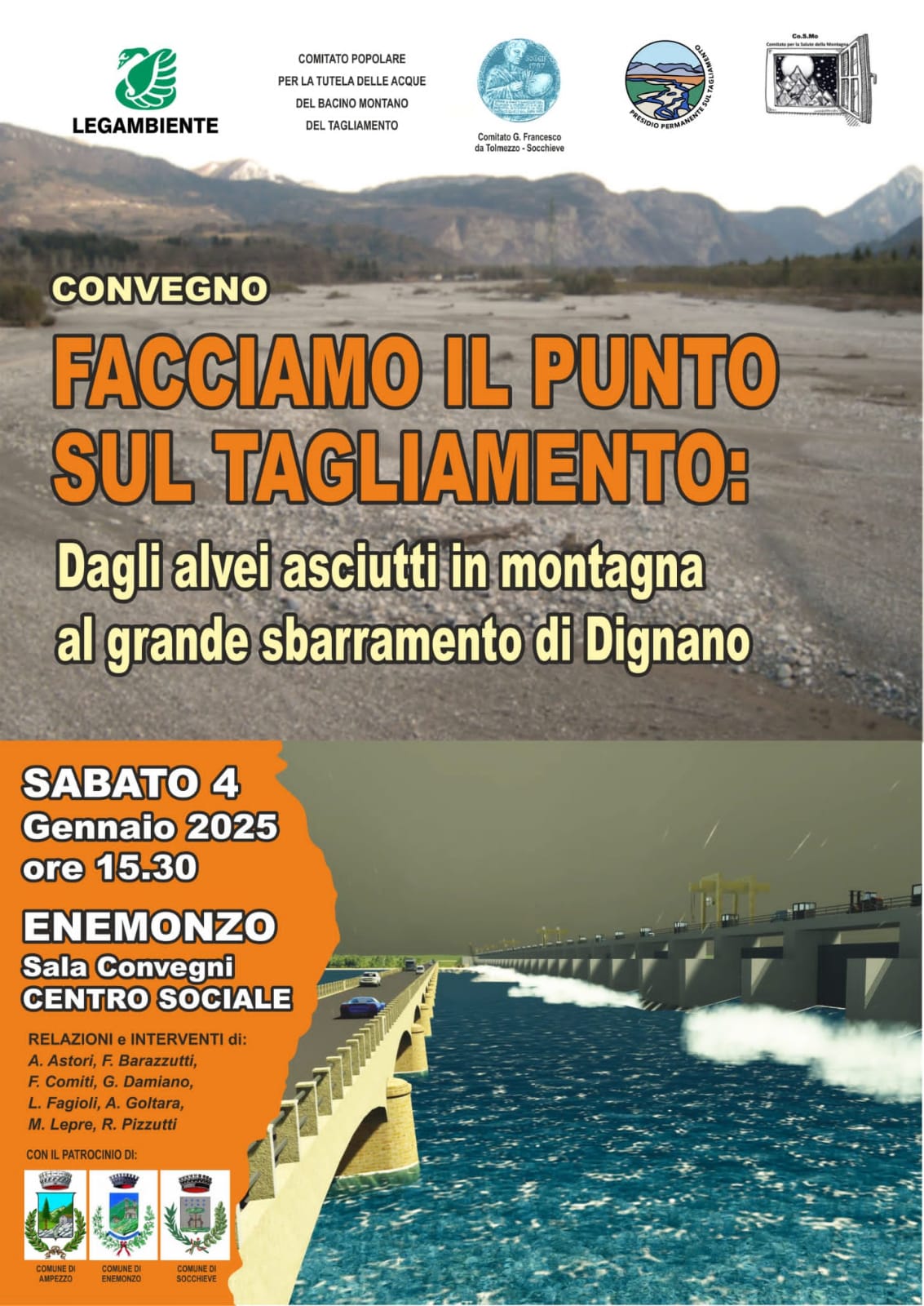 Storicamente, ed in particolare dall’alluvione del novembre 1966 in poi, i maggiori danni ed il maggior numero di vittime a causa di eventi atmosferici estremi nel bacino del Tagliamento si sono verificati in montagna! Questo dato, per niente trascurabile, sembra venire completamente ignorato dall’acceso dibattito che si sta sviluppando nella nostra regione, tutto incentrato sugli interventi che dovrebbero limitare il rischio di esondazioni nella parte inferiore del fiume e sulla proposta di realizzare nuove, costose e discutibili “grandi opere” nella sua parte mediana, che avranno un inevitabile impatto sull’ambiente e sul paesaggio. Siamo convinti che il Tagliamento - definito il - sia per le sue caratteristiche e valenze naturali, ma che queste, compromesse dagli indiscriminati prelievi a scopo idroelettrico ed irriguo in montagna, vadano tutelate dalla sorgente fino alla foce. Per questo riteniamo anche che esso vada considerato quando si tratta di pianificare, con equilibrio e saggezza, gli interventi lungo il suo corso. Per fornire una corretta informazione ai cittadini sulla storia, la situazione del fiume e sui progetti attualmente in discussione, il circolo Legambiente della Carnia - Val Canale-Canal del Ferro, il Comitato Popolare per la Tutela delle Acque del Bacino Montano del Tagliamento e il Comitato G. Francesco da Tolmezzo, assieme ad altre associazioni e comitati e con il patrocinio dei Comuni di Ampezzo, Enemonzo e Socchieve, hanno deciso di organizzare questo Convegno. Hanno assicurato la loro partecipazione esperti e studiosi di vari ambiti, uniti dall’impegno e dalla passione che hanno dedicato alla conoscenza del nostro principale fiume e dalla volontà di ribadire come i suoi problemi debbano in primo luogo venire risolti in montagna.