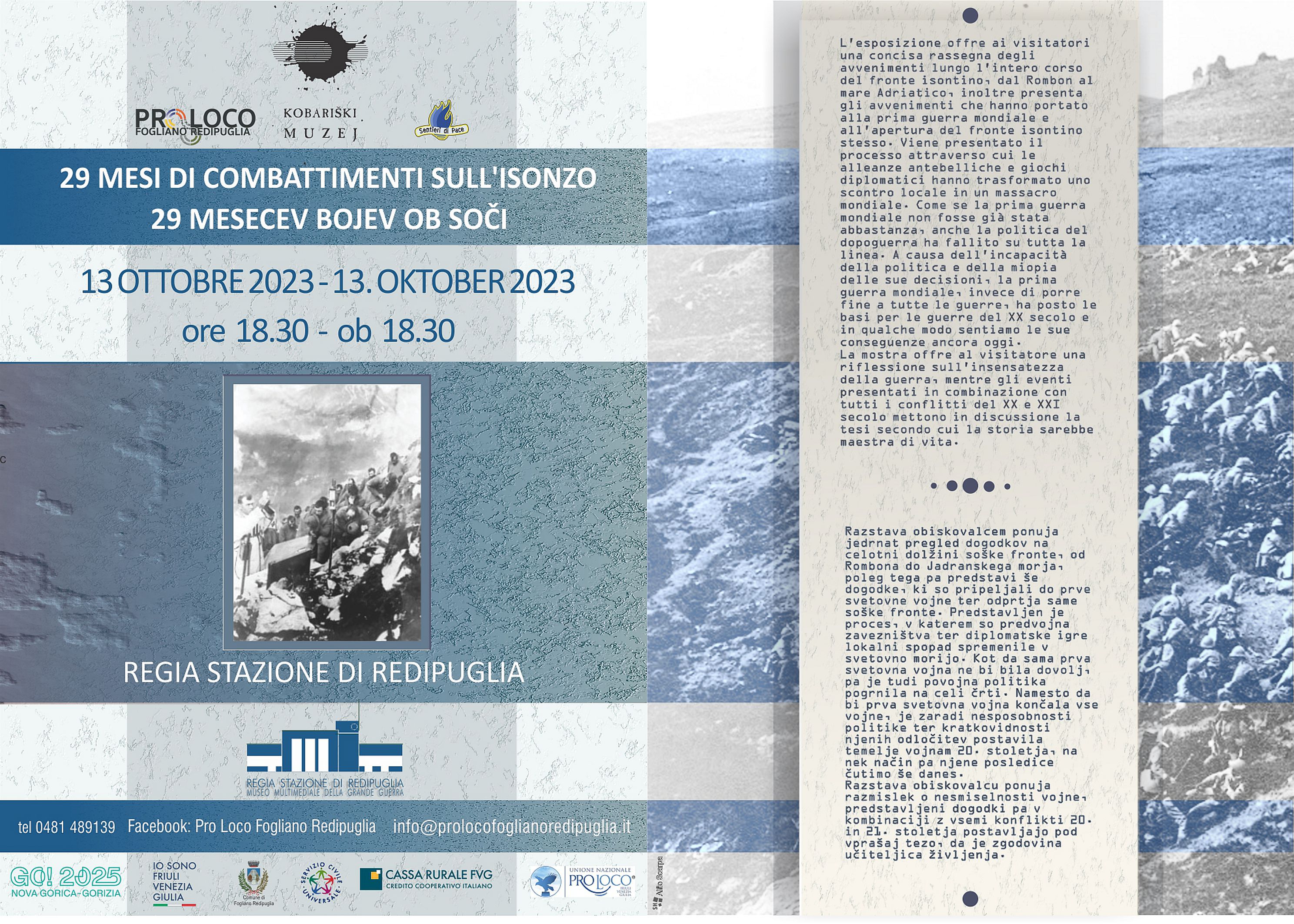 • 29 mesi di combattimenti sull'Isonzo - 29 Mesecev bojev ob Soci - esposizione bilingue curata dal Museo di Caporetto che racconta il fronte isontino
