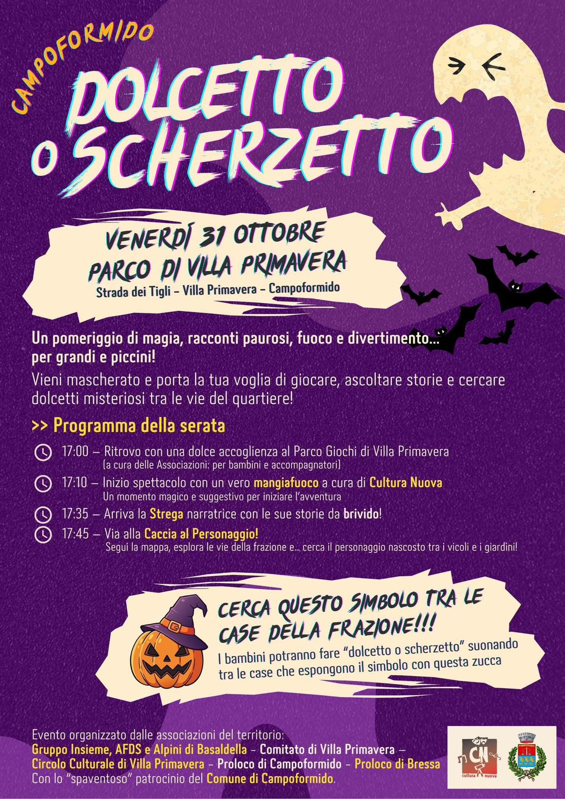 I bambini, mappa alla mano, potranno fare il classico giro del “Dolcetto o Scherzetto” cercando le case che esporranno la zucca con il cappello da strega simbolo delle tappe amiche dove li attendono dolci e sorrisi.
