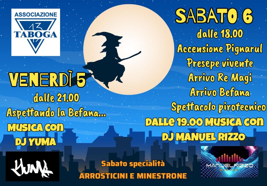 Ritorna anche per quest'anno il tradizionale appuntamento con le celebrazioni epifaniche nella borgata di Taboga di Gemona, organizzato dall'Associazione Taboga13 presso la sede dell'associazione.