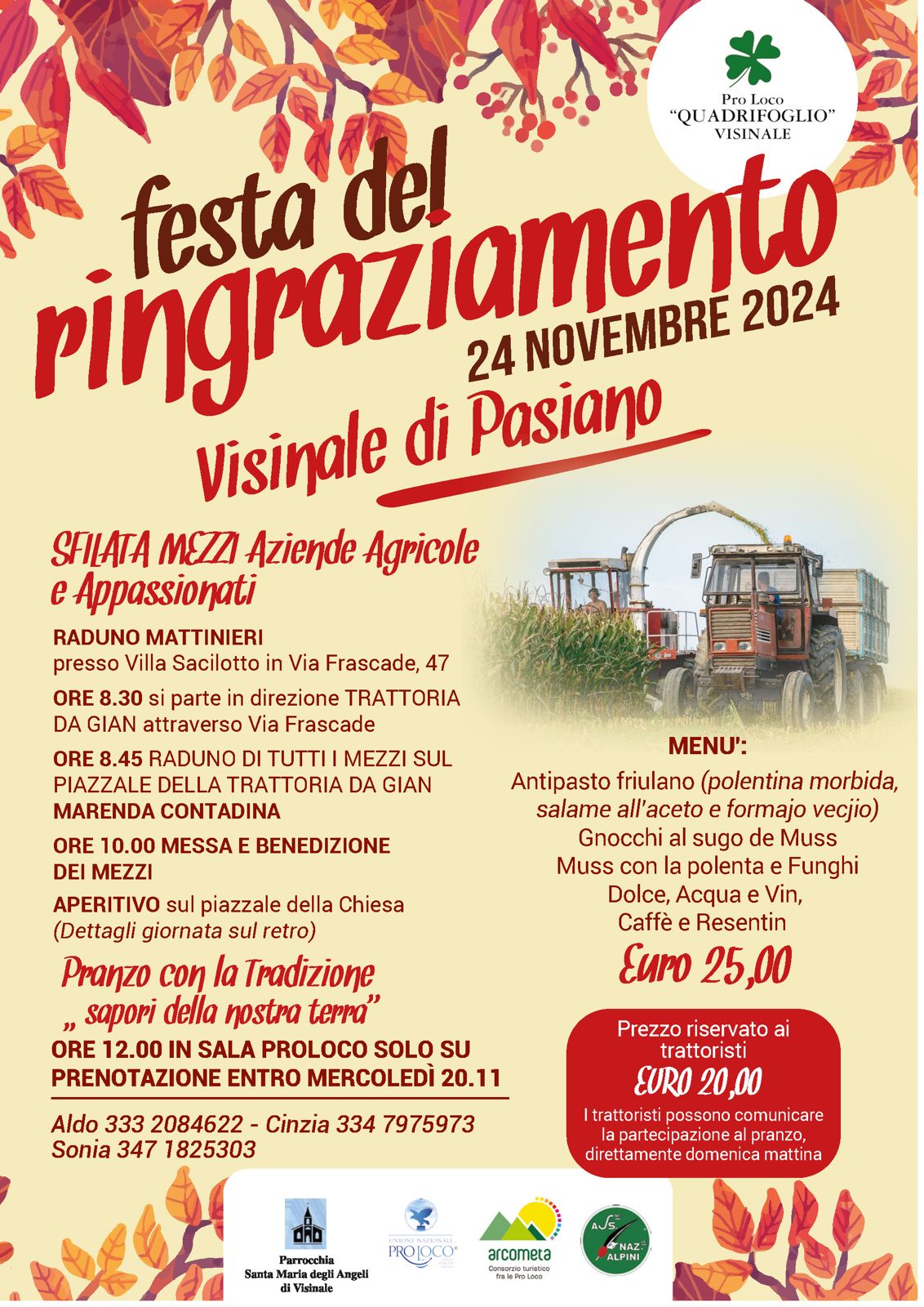DOMENICA 24 NOVEMBRE, dopo la sfilata dei mezzi agricoli e il momento solenne con la S. Messa alle ore 10.00 e benedizione dei mezzi sul piazzale della Chiesa, abbiamo piacere di invitarvi a pranzo, presso SALA PRO LOCO QUADRIFOGLIO con un menù che evoca sapori e ricordi dell'autunno, nelle nostre campagne.