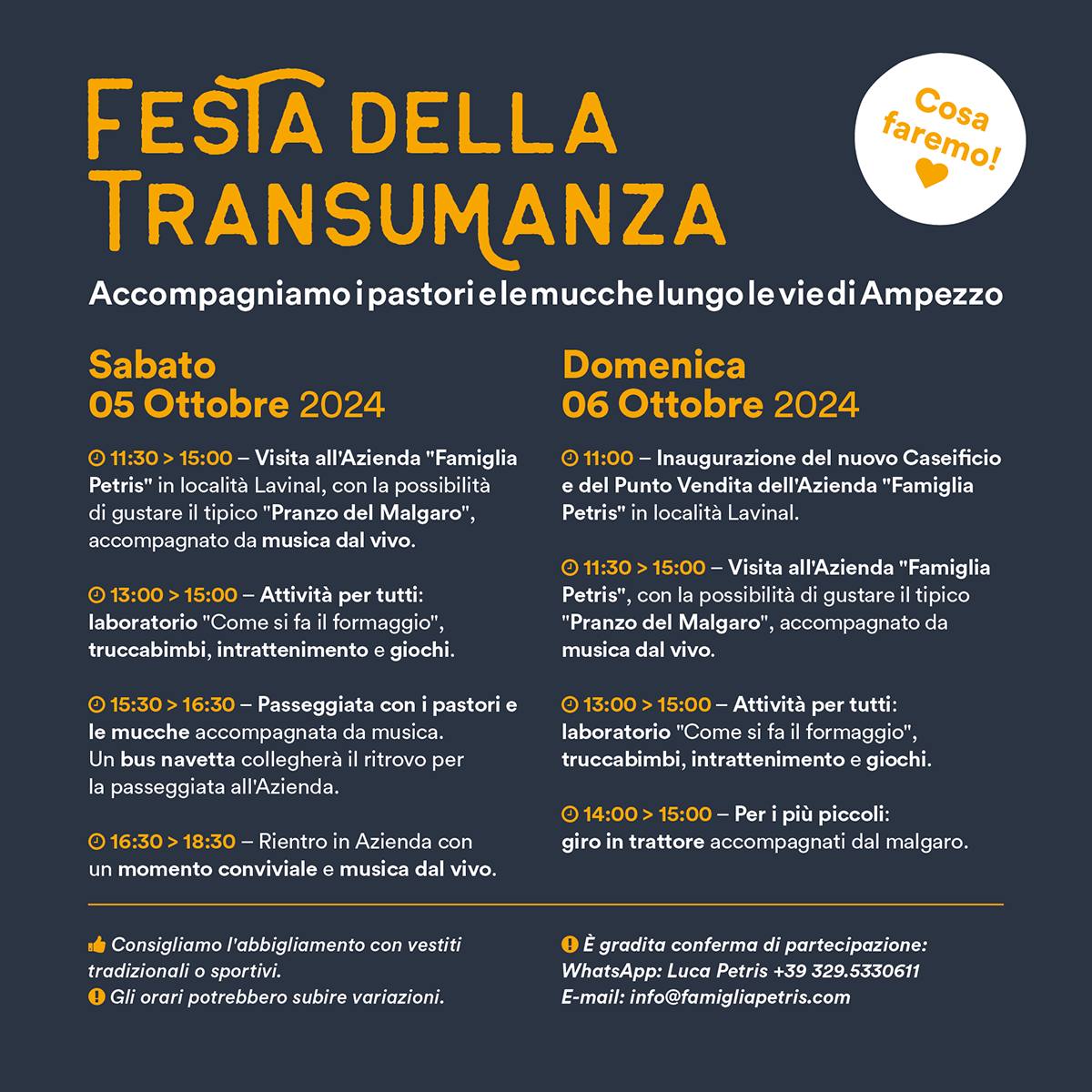 Gradita conferma di partecipazione: +39 329 5330611 info@famigliapetris.com