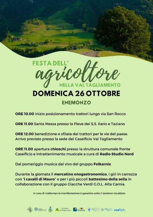 Ore 12.00 benedizione e sfilata dei trattori per le vie del paese. Arrivo previsto presso la sede del Caseificio Val Tagliamento