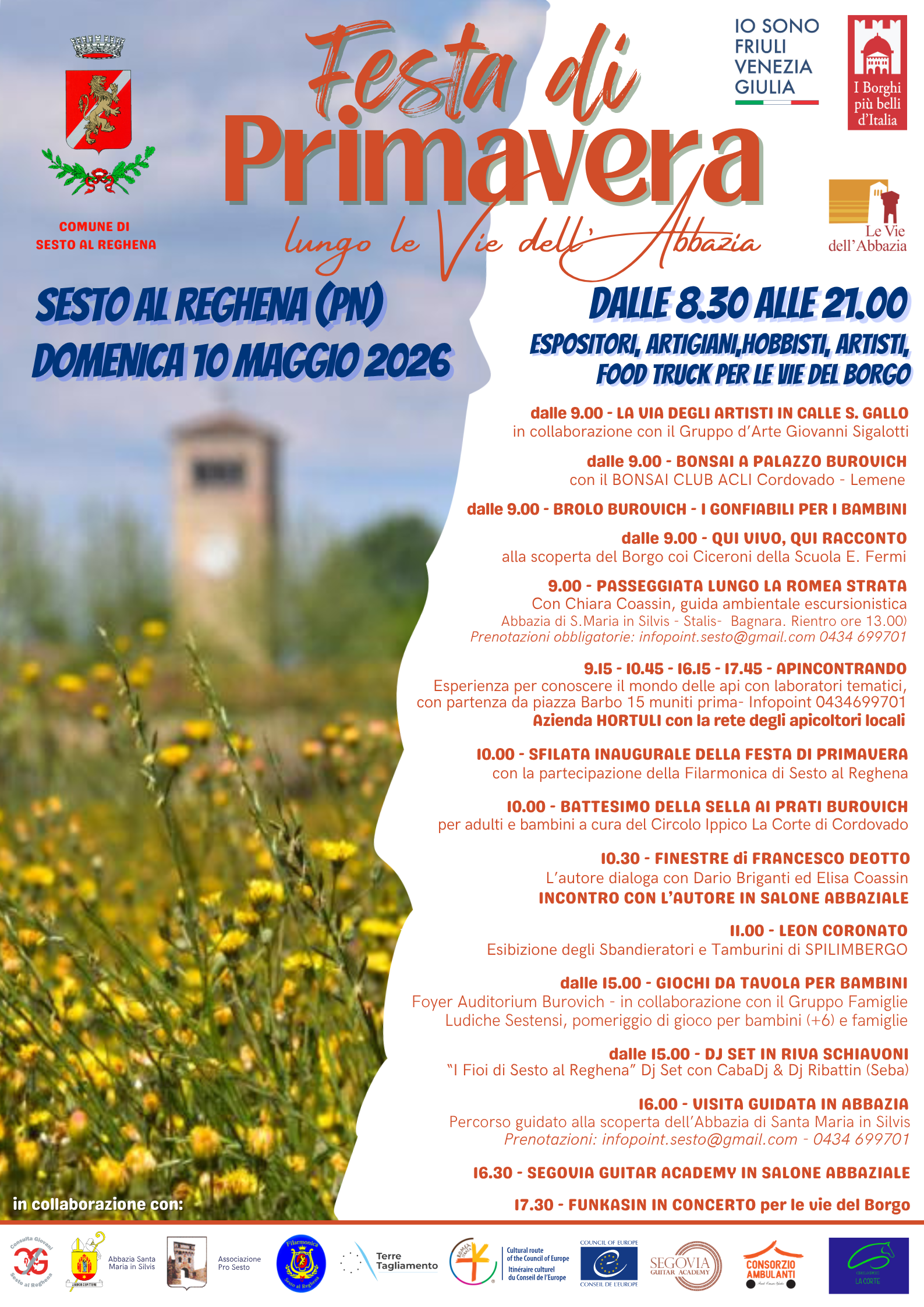 Gonfiabili per i bambini - “Qui vivo, qui racconto”: i Ciceroni della scuola “Enrico Fermi” raccontano il borgo - Le Eccellenze di IO SONO FRIULI VENEZIA GIULIA in Corte Burovich e FOOD TRUCK in Riva Schiavoni - Mercato di qualità e Hobbisti - LA VIA DEGLI ARTISTI a cura del Gruppo d’Arte Giovanni Sigalotti in Calle San Gallo - BONSAI a cura di Club Bonsai ACLI Cordovado - Lemene