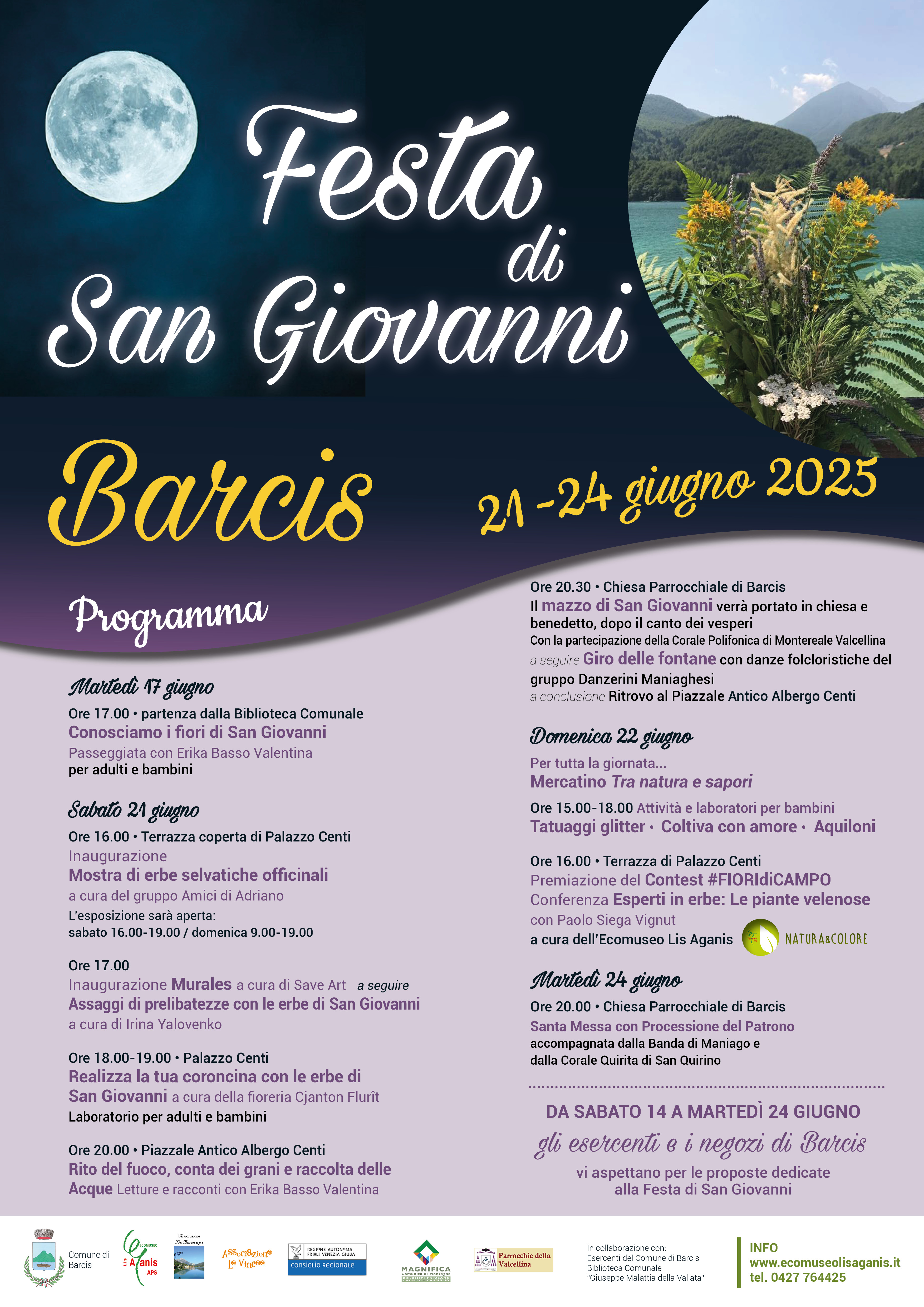 La Festa di San Giovanni a Barcis si celebra il 24 giugno, con eventi che iniziano già dal 21. La festa è legata al solstizio d'estate e alla tradizione della "Notte di San Giovanni", durante la quale si svolgono riti e tradizioni antiche.