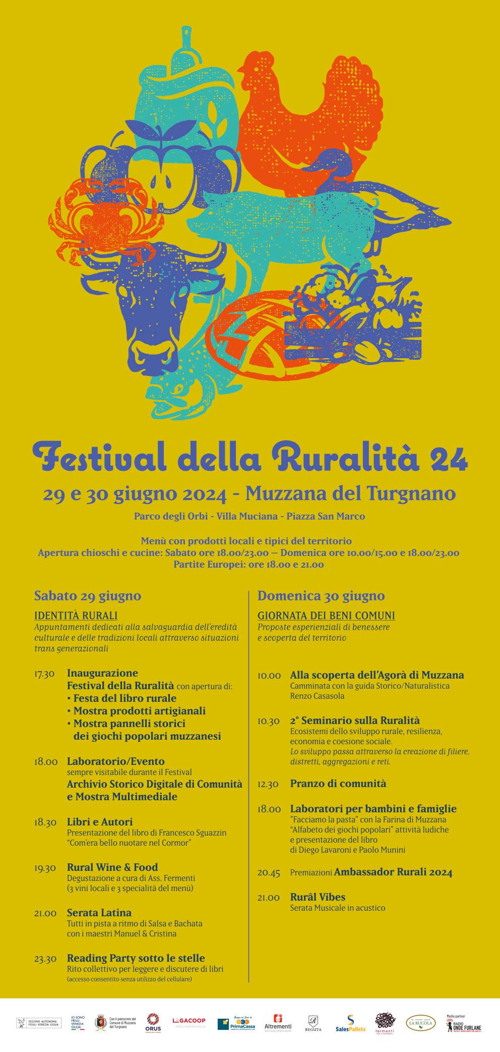 Orus A.p.s. propone il 29 e 30 Giugno 2024 il Festival della Ruralità, un festival incentrato completamente sul concetto di ruralità. Il Festival della Ruralità ‘24, sostenuto dalla Regione Friuli Venezia-Giulia è una manifestazione che guarda al futuro con speranza, attuando una serie di iniziative volte alla conoscenza di pratiche ambientali sostenibili.