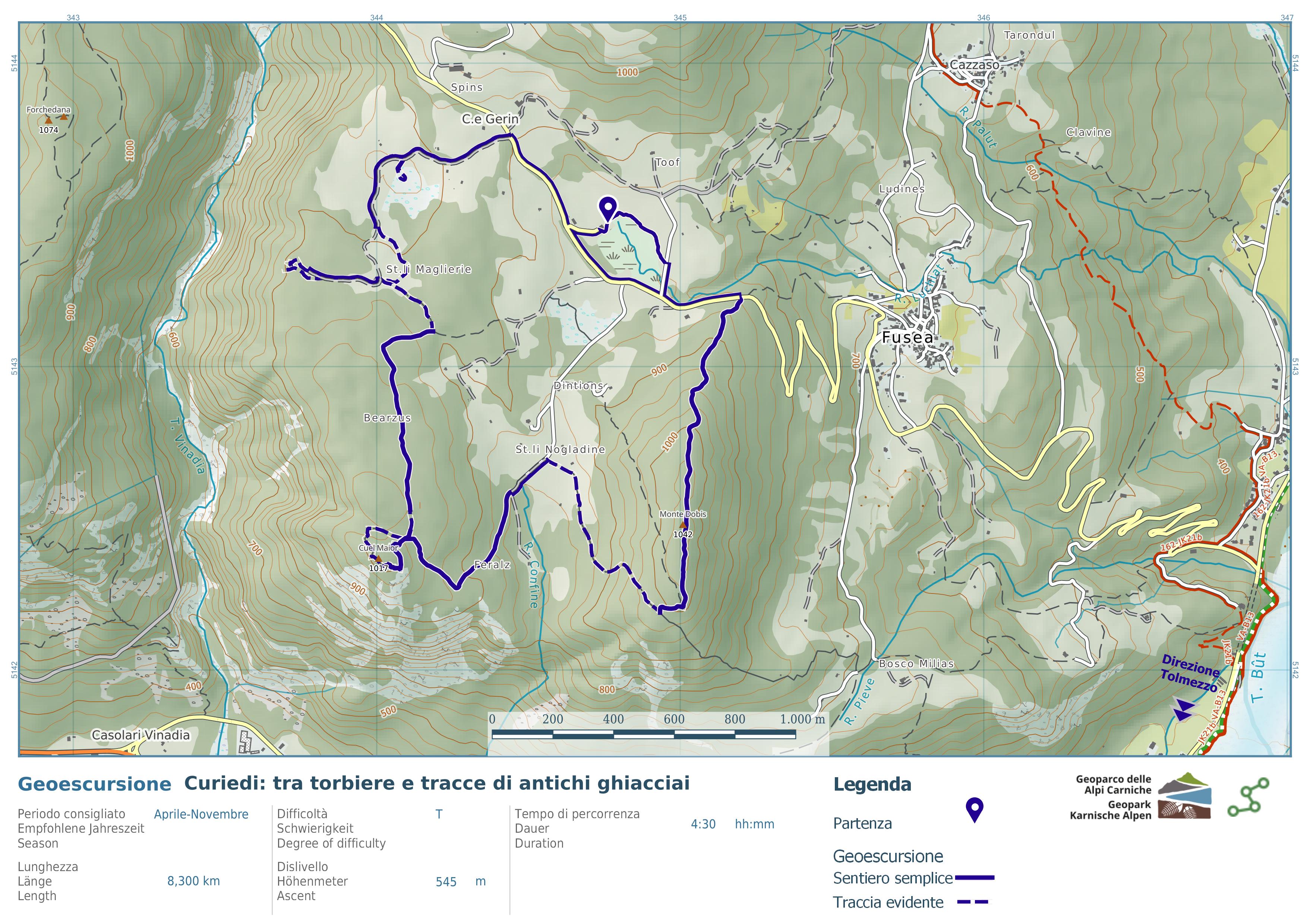 Il tranquillo altopiano di Curiedi è un'ottima palestra per imparare a riconoscere l’azione dell’antico ghiacciaio del Tagliamento. Incontreremo interessanti torbiere montane, oggi prezioso biotopo regionale, per poi salire verso il panoramico Cuel Maior. Ci dirigeremo quindi verso la cima del monte Dobis, osservando come la tettonica abbia guidato l’azione glaciale, dandoci in eredità l’assetto del territorio che oggi conosciamo.