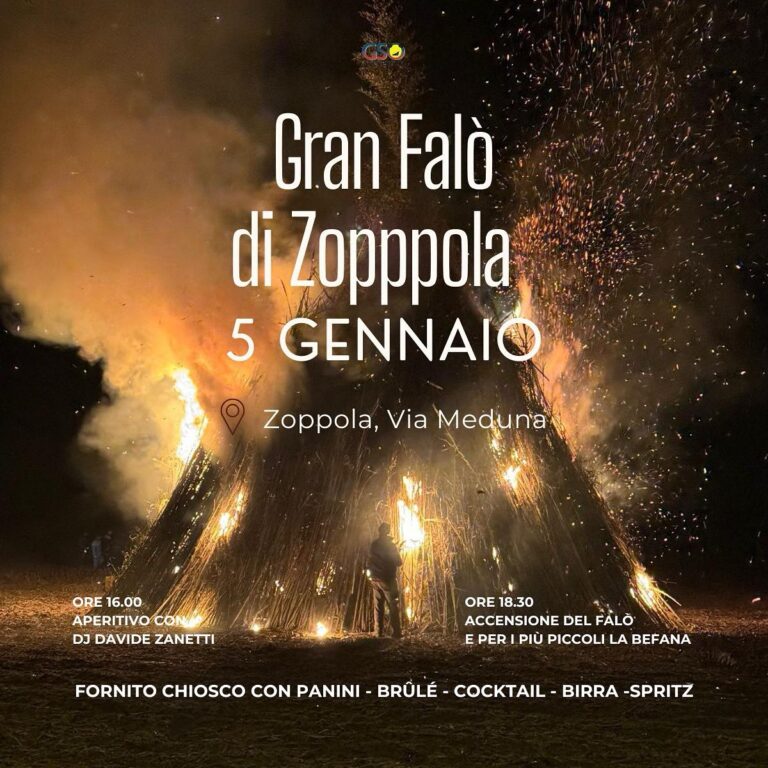 Domenica 5 gennaio dalle ore 16:00 in via Meduna a Zopppola, la giornata epifanica inizierà con un’aperitivo con dj Davide Zanetti e un fornitissimo chiosco con panini, brulé, cocktail, birre e spritz.