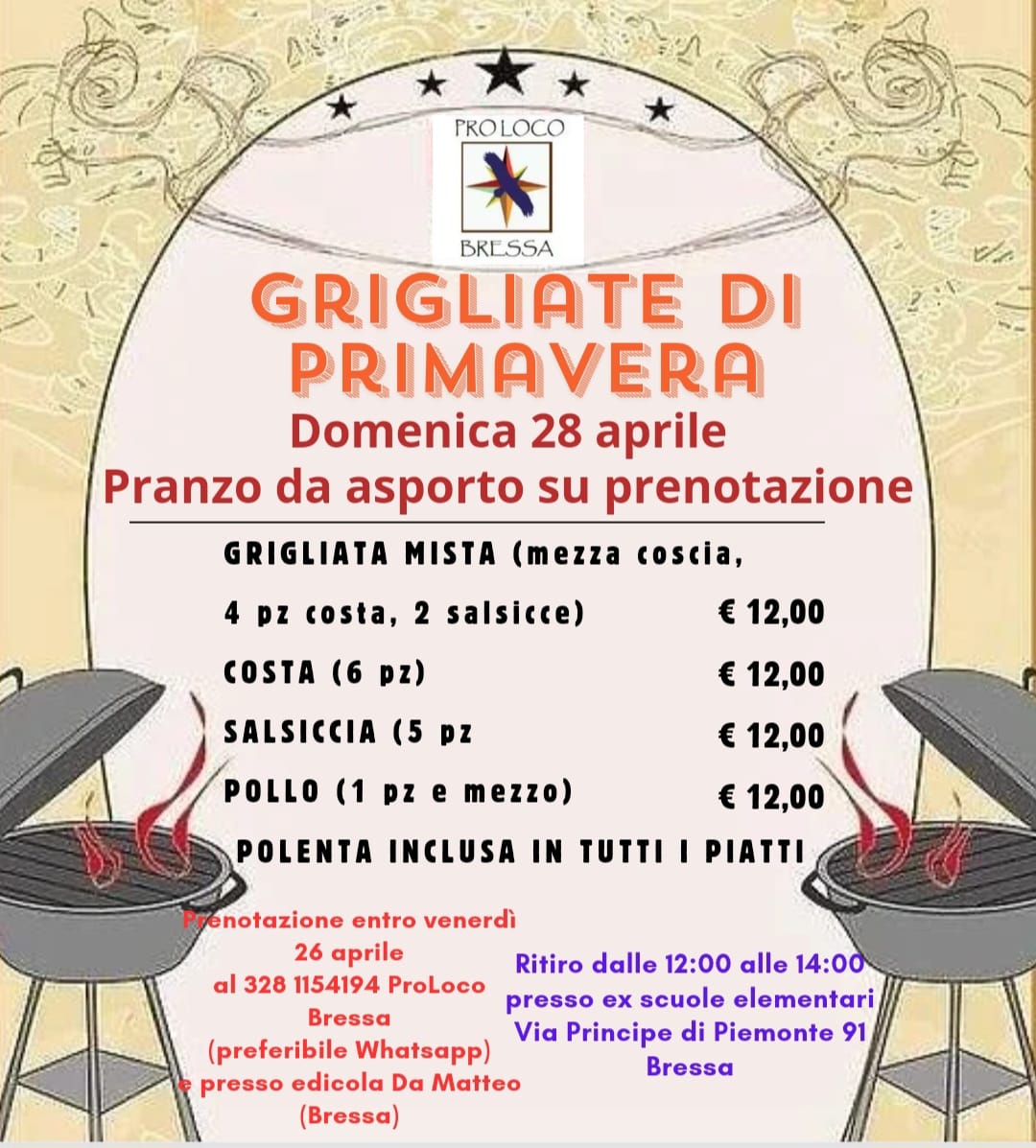 Pranzo da asporto su prenotazione: entro venerdì 26 aprile 2024 (tutte le info di contatti sono reperibili nella locandina allegata)