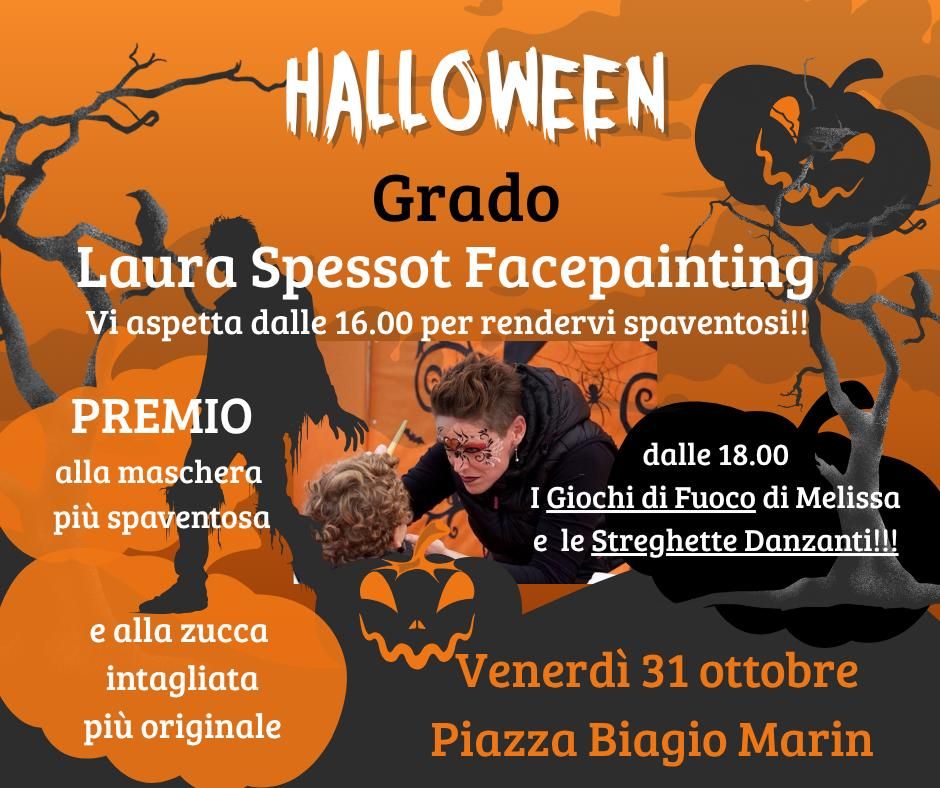 Venerdì 31 ottobre "Laura Spessot Facepainting" vi aspetta in Piazza Biagio Marin di fronte al Comune di Grado dalle 16.00 in poi