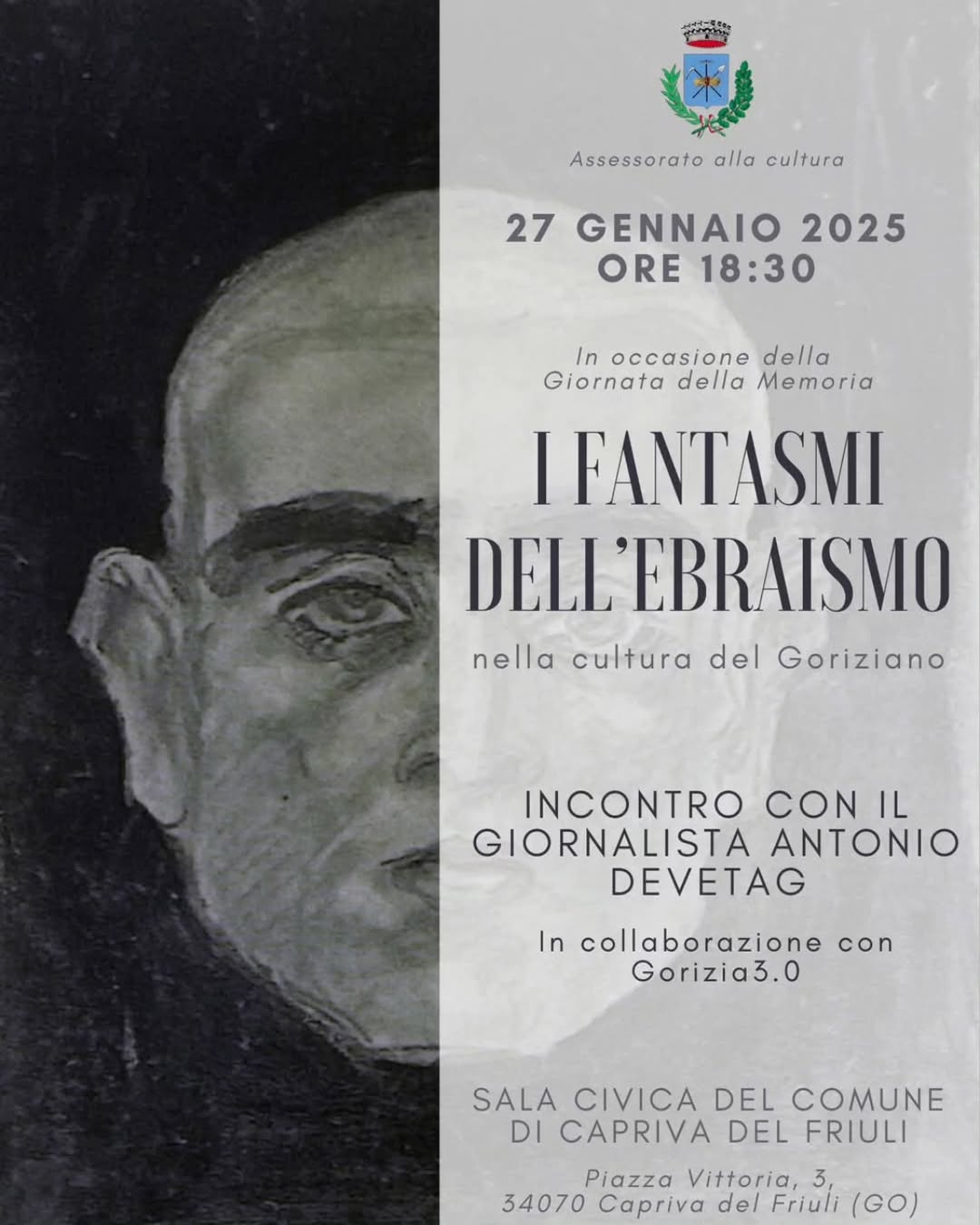 In occasione della Giornata della Memoria il 27 gennaio alle ore 18.30 presso la Sala Civica del Comune di Capriva si svolgerà l'incontro con il giornalista Antonio Devetag in collaborazione con Gorizia3.0.