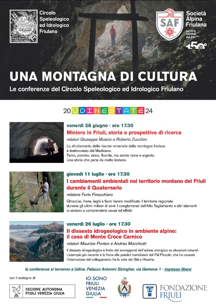 Società Alpina Friulana e Circolo speleologico e idrologico friulano con il sostegno della Regoine Friuli Venezia Giulia, il Comune di Udine e Fondazione Friuli
