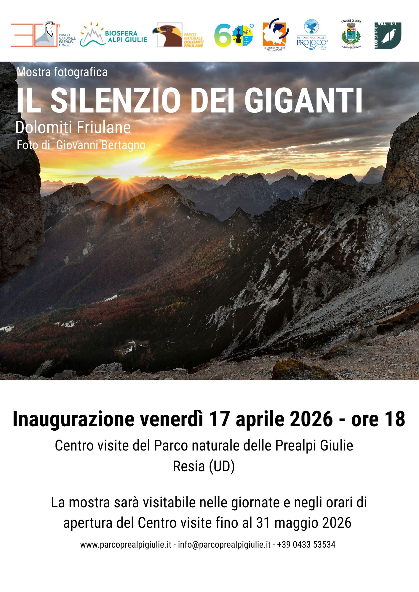 Il Parco naturale delle Prealpi Giulie ospita la mostra fotografica “Il silenzio dei Giganti - Dolomiti Friulane”, con immagini di Giovanni Bertagno, guida naturalistica, gentilmente concessa dal Parco naturale delle Dolomiti Friulane.