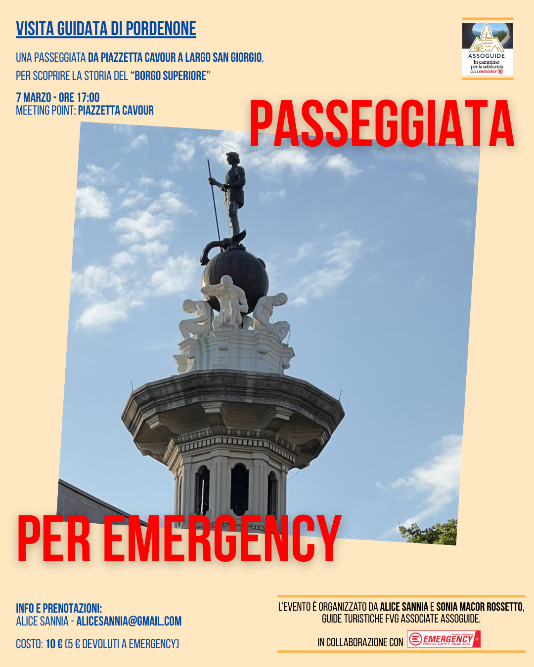L'evento è organizzato dalle guide turistiche FVG Alice Sannia e Sonia Macor Rossetto in collaborazione con il Gruppo Emergency Pordenone.