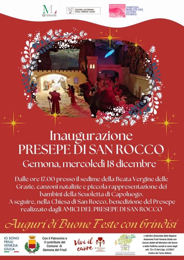 A Gemona si inaugura il tradizionale presepe di San Rocco nell'omonima chiesa in Piazzetta del Ponte.