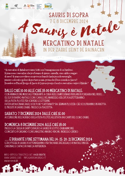 Il Mercatino di Natale a Sauris è una festa per tutti i sensi. Nelle corti e lungo le vie principali del borgo si respira un'atmosfera di calore sincero. L'avvento è un periodo di magica attesa e il Mercatino di Natale crea un momento di incanto, fatto di tradizioni , sapori, profumi e di gioia per adulti e bambini.