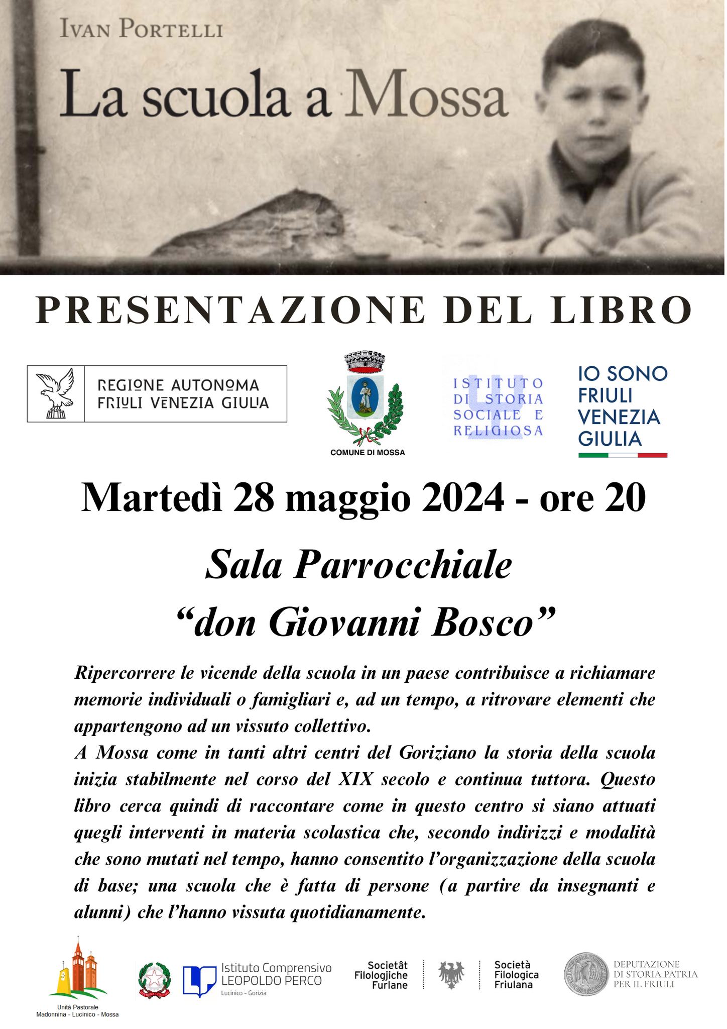 Il libro, intitolato "La scuola a Mossa", è stato scritto dal prof. Ivan Portelli e racconta le vicende della scuola del nostro paese, contribuendo a richiamare memorie individuali e famigliari di gran parte della comunità.