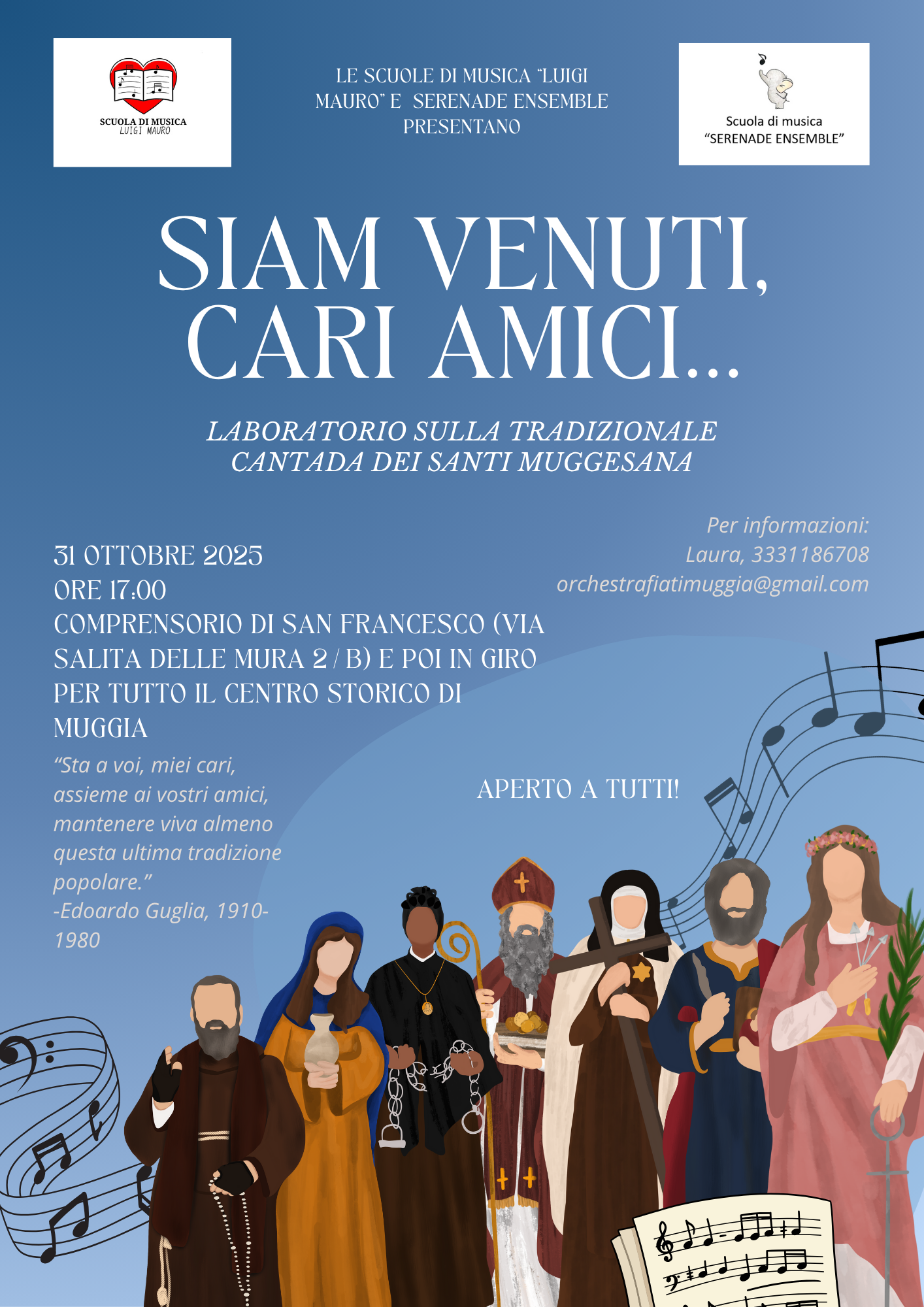 La scuola di musica "Luigi Mauro" e "Serenade Ensemble" presentano il laboratorio sulla tradizionale "Cantada dei Santi" muggesana.