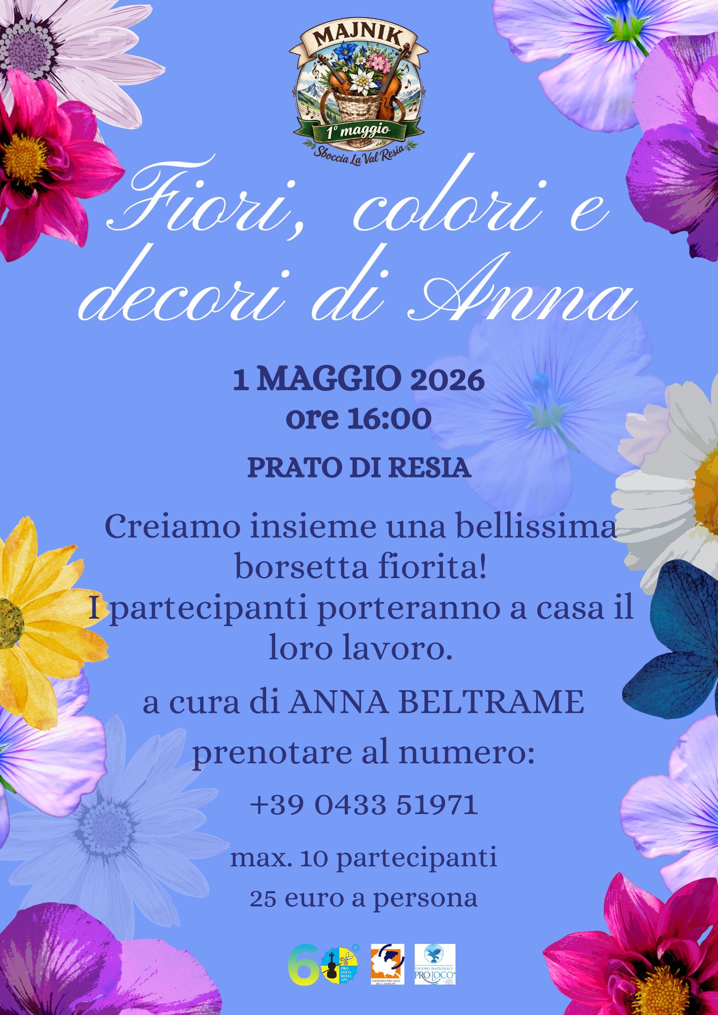Durante la manifestazione " - " del Primo Maggio a Prato di Resia sarà possibile partecipare a vari laboratori tra cui questo interessante laboratorio "Creiamo insieme una bellissima borsetta di fiori"