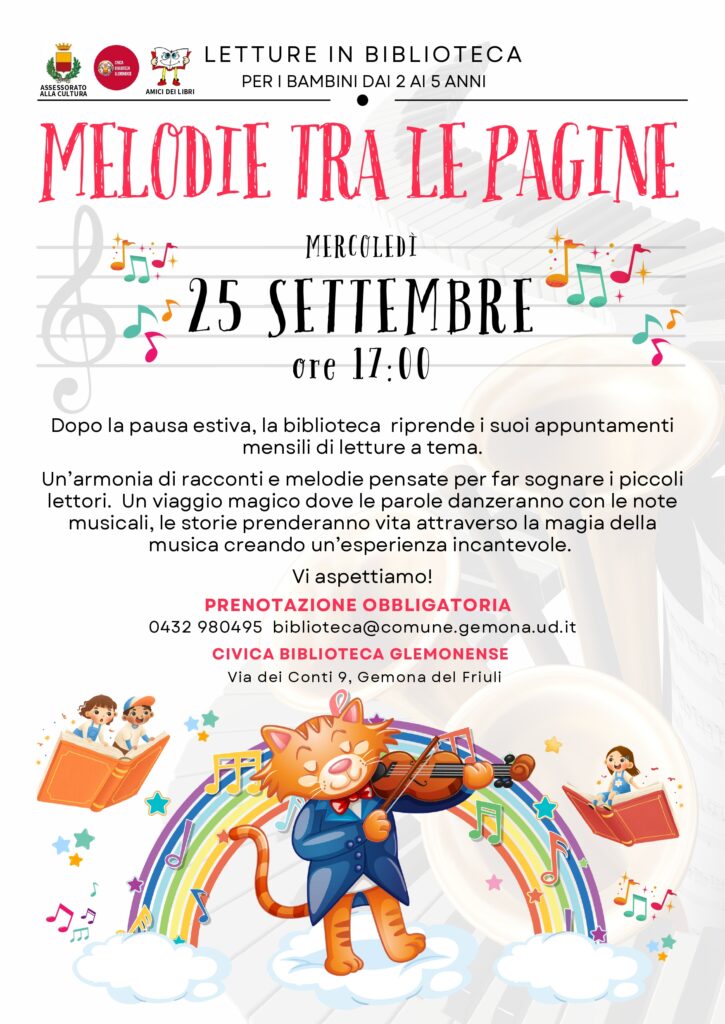 Mercoledì 25 settembre alle ore 17:00 ritornano le letture in biblioteca per bambini dai 2 ai 5 anni a cura della Civica Biblioteca Glemonense con l'appuntamento: "Melodie tra le note".