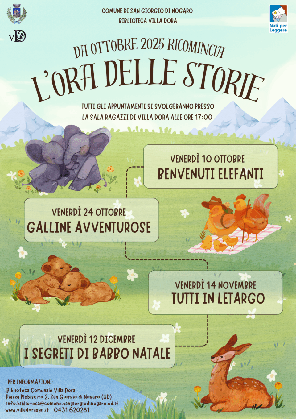 Venerdì 14 Novembre 2025, alle ore 17.00, presso la Sala Ragazzi di Villa Dora, ricomincia "L'ora delle storie", una serie di appuntamenti di lettura dedicati ai più piccoli. Il terzo incontro si intitolerà "Tutti in letargo".