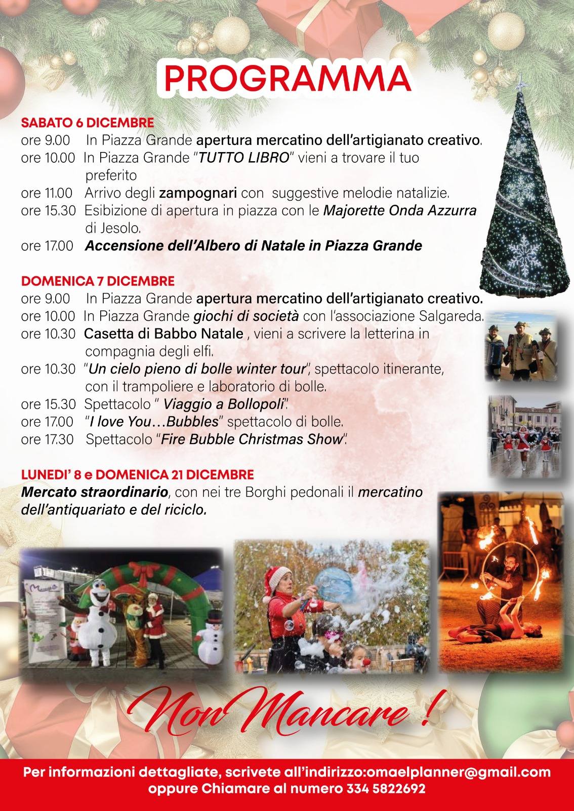 Mercatino di Natale, spettacoli itineranti per grandi e piccoli, la Casetta di Babbo Natale con gli elfi, giochi di società, truck food gourmet e tanto altro ancora...