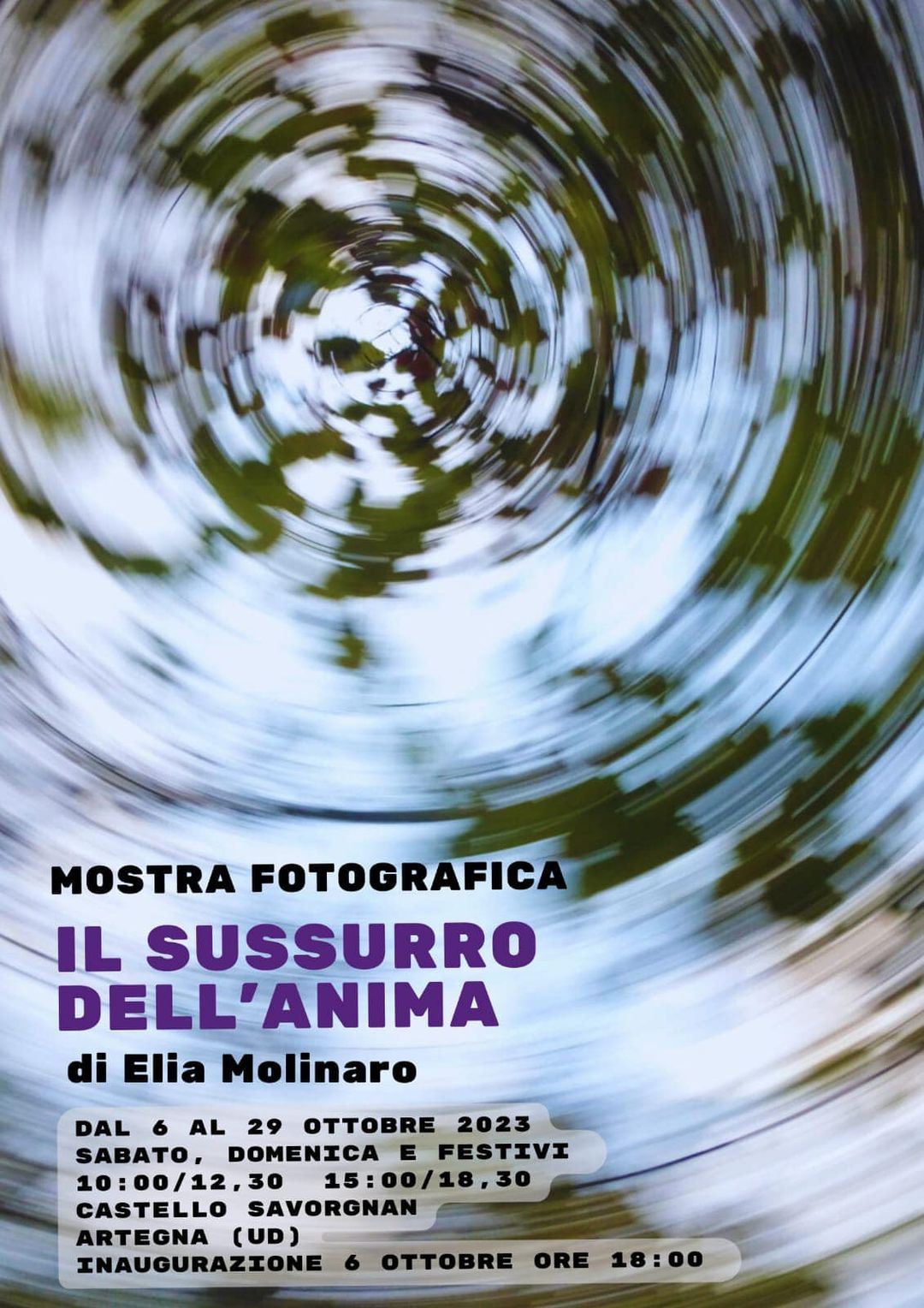 Venerdì 6 ottobre alle 18 al Castello Savorgnan di Artegna si terrà l’inaugurazione della mostra fotografica “Il sussurro dell’anima” di Elia Molinaro.