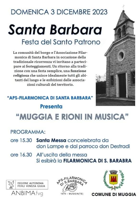 In occasione dei festeggiamenti in onore di Santa Barbara, il Santo Patrono della frazione di Muggia, la comunità del borgo e l'Associazione Filarmonica di Santa Barbara, organizzano una semplice festa in nome della tradizione e una funzione religiosa che unisce idealmente tutti gli abitanti del luogo.