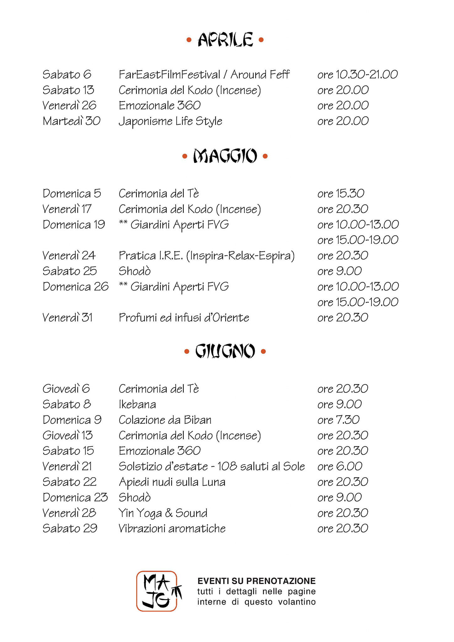 Per info tariffe e prenotazioni: m. 338 2718245 o e-mail my.august.japanesegarden@gmail.com