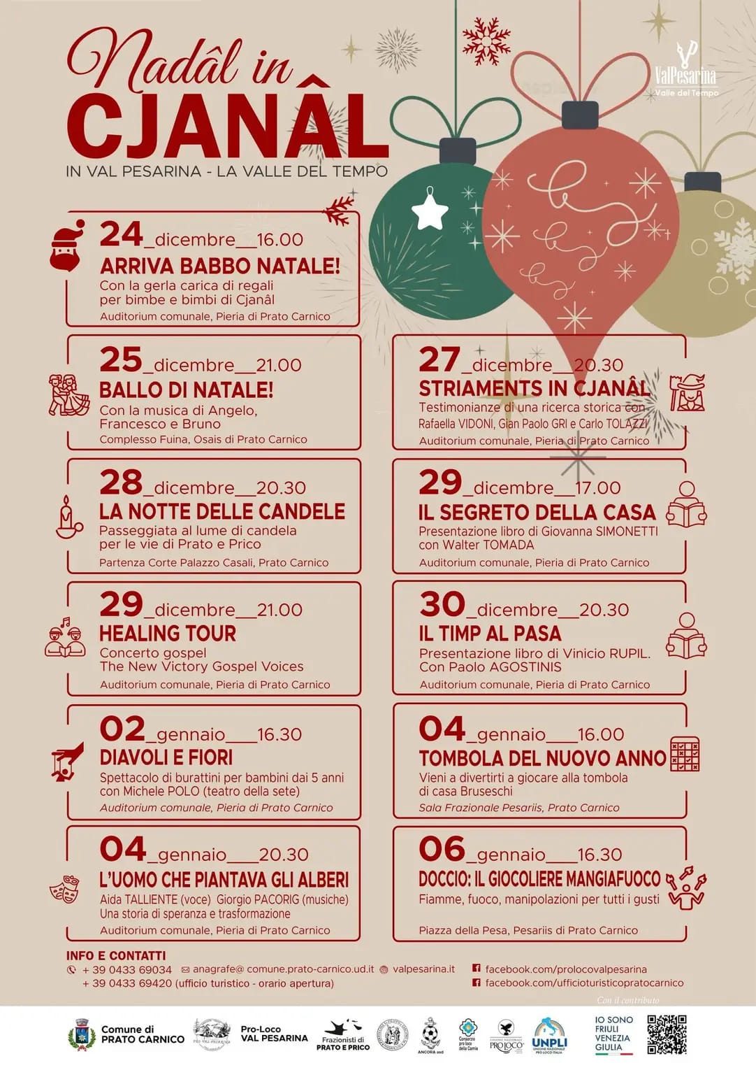 24_dicembre_ore 16.00 - ARRIVA BABBO NATALE! Con la gerla carica di regali per bimbe e bimbi di Cjanâl - c/o Auditorium comunale, Pieria di Prato Carnico