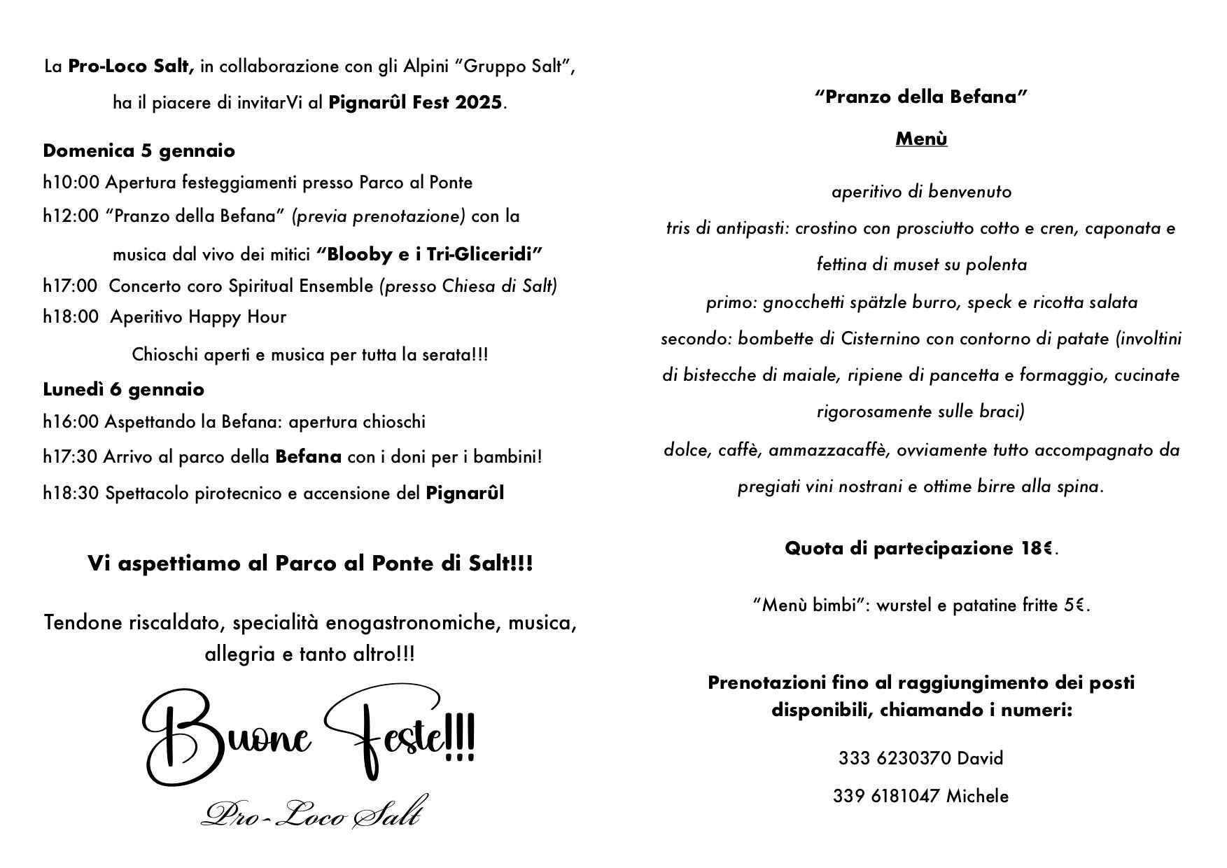 5 gennaio ore 12:00 tradizionale pranzo della befana.
