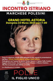 Tappa a Grado per il giornalista ed esule istriano di seconda generazione Gian Paolo Polesini, che domenica 23 marzo alle ore 17:00, al Grand Hotel Astoria dell’Isola del Sole presenterà il suolibro autobiografico "Polle - Il figlio unico" (Orto della Cultura, Udine 2023) nell’ambito di un Incontro istriano promosso dalla delegazione di Grado dell’Associazione Nazionale Venezia Giulia e Dalmazia insieme al Comune di Grado.